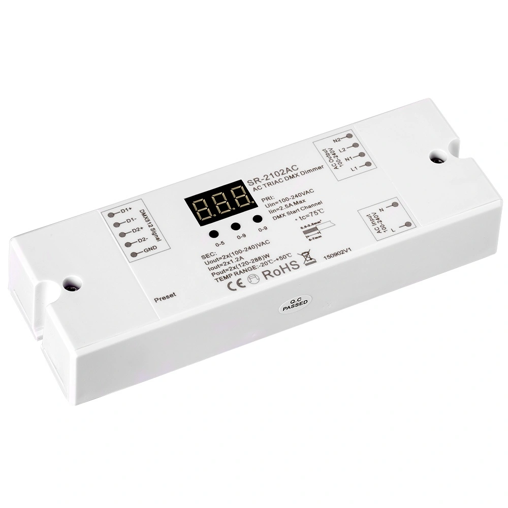 Характеристики - Декодер DMX SR-2102AC (230V, 2x1.2A) (Arlight, IP20 Пластик, 3 года)