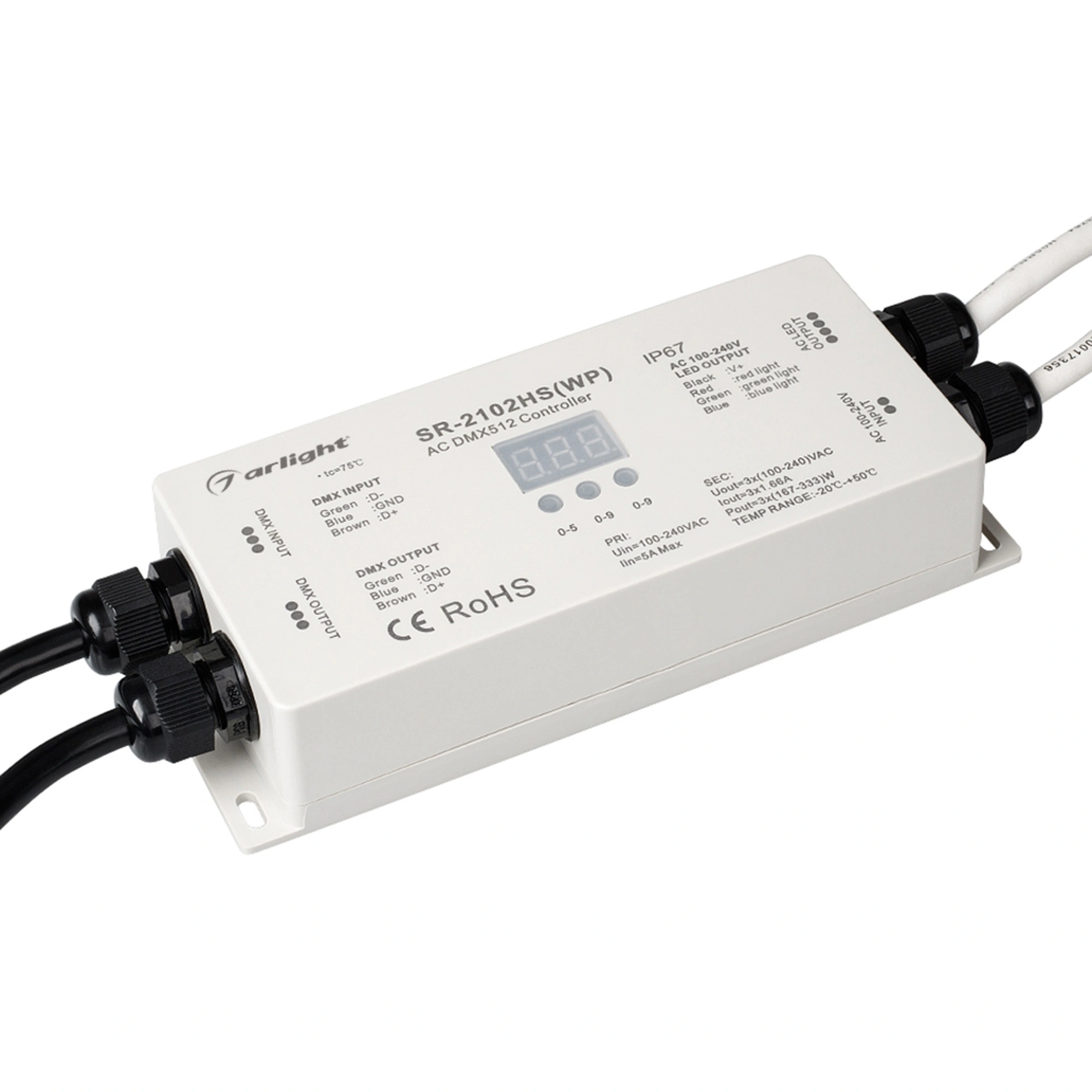 Характеристики - Декодер DMX SR-2102HSWP (230V, 3x1.66A) (Arlight, IP67 Пластик, 3 года)