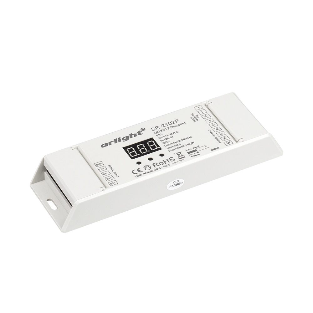 Характеристики - Декодер DMX SR-2102P (12-36V, 240-720W, 4CH) (Arlight, IP20 Пластик, 3 года)