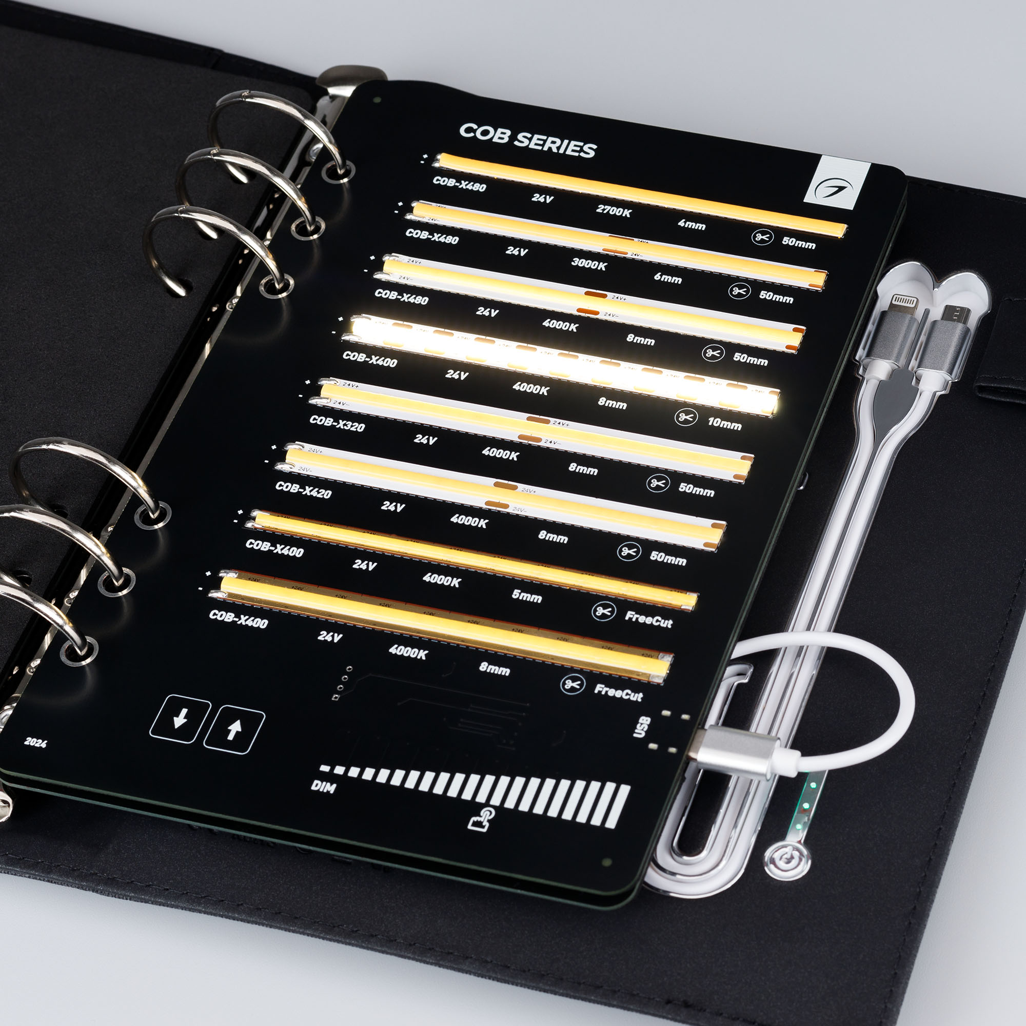 В кейс входят 45 образцов моделей лент COB, RT, MICROLED, MIX, SPI.