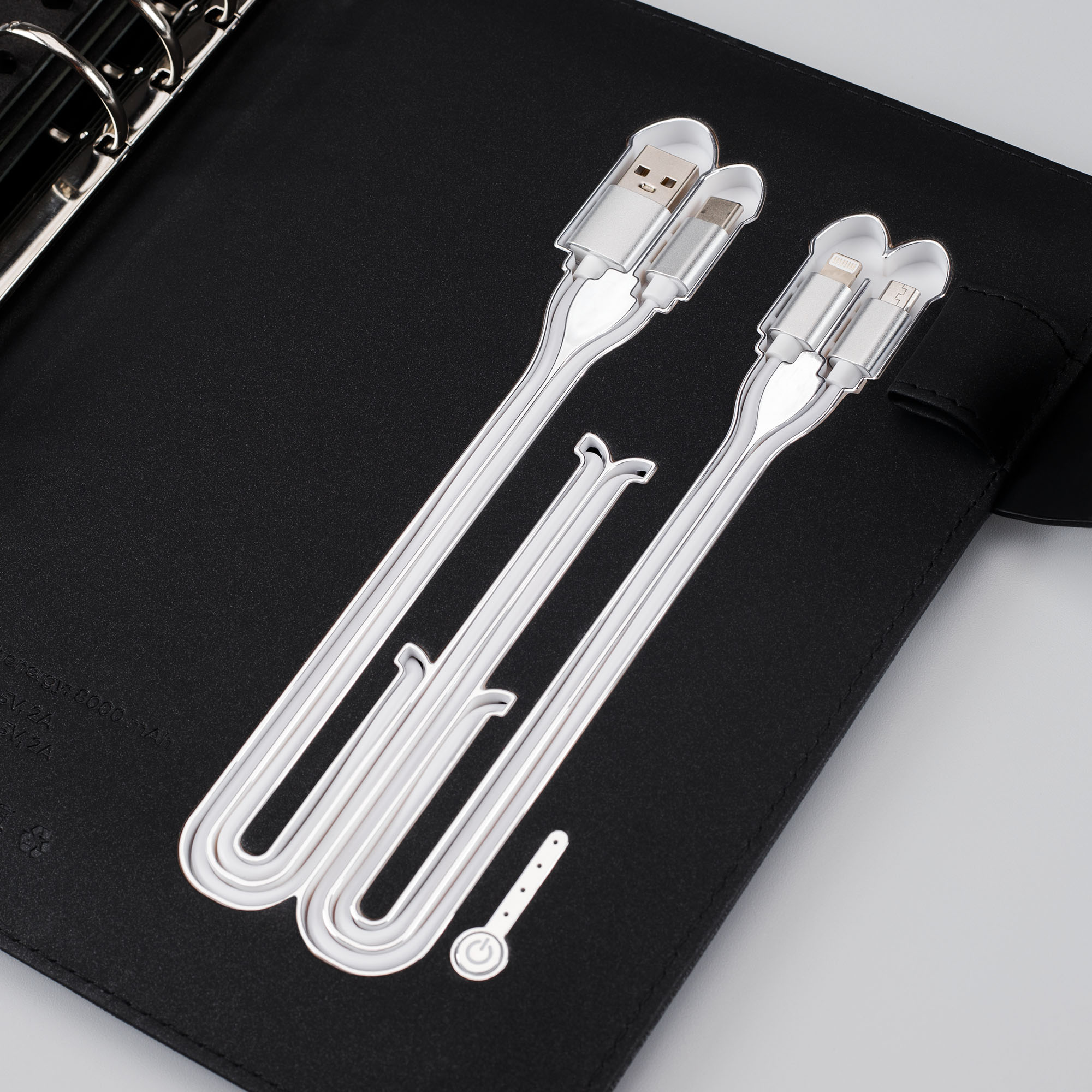 Демо-кейс работает от Power Bank (8000 mAh). В комплекте 3 разъема для подключения и 1 разъем для зарядки.