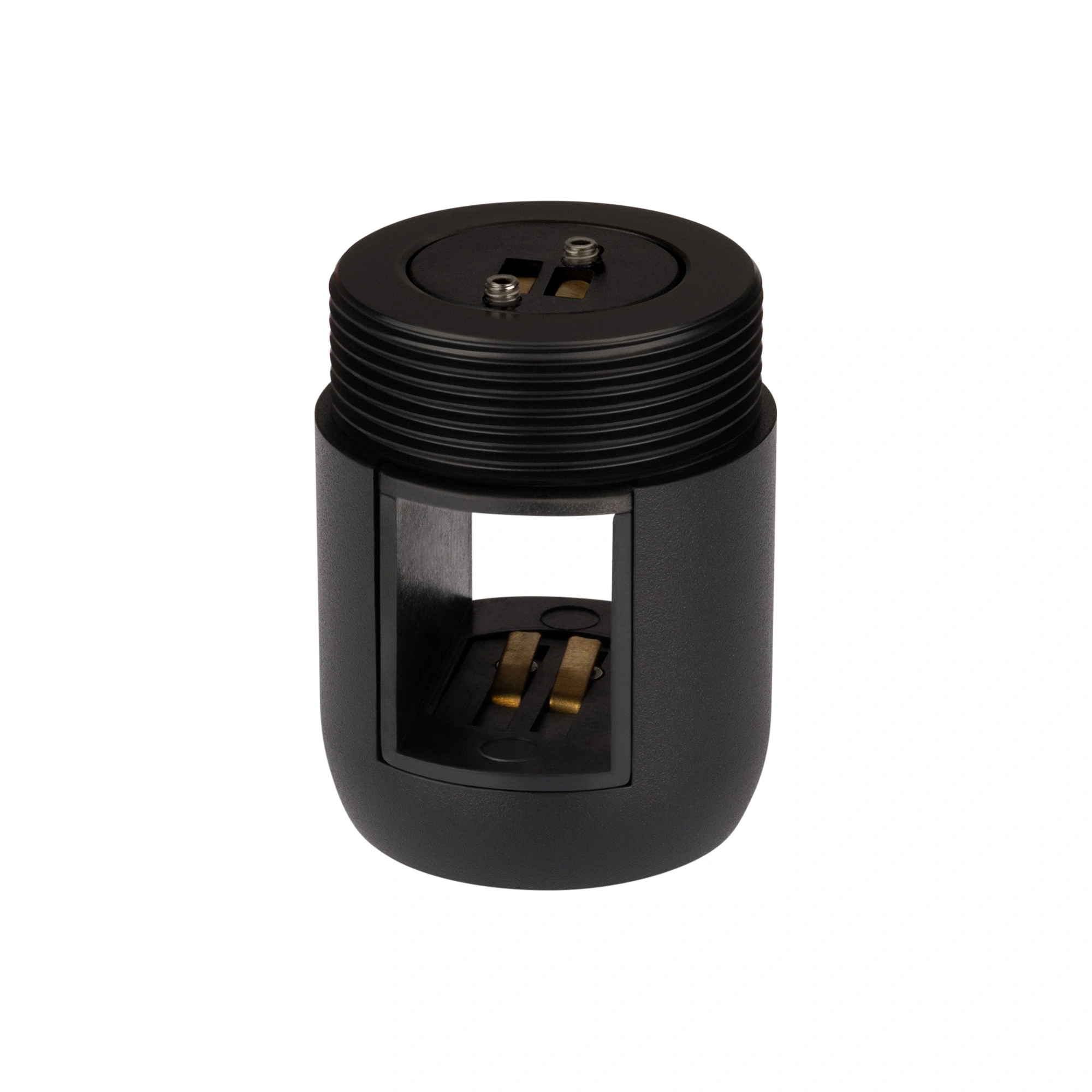 Держатель трека HOLDER-A используется для механического присоединения подвесов или коннекторов с тип крепления A, в том числе при создании многоуровневых конструкций. Держатель имеет тип крепления A. Размер: Ø38 х 52,5 мм. Не проводит электричество. Изготавливается из алюминия, окрашенного в черный цвет.