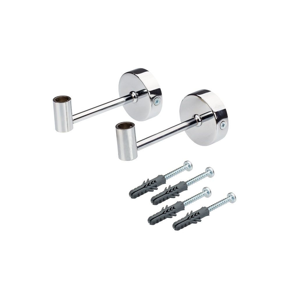 Пара держателей для выносной установки профиля PEN на высоте 100мм. Материал - хромированный металл. Крепление на стену, потолок дюбелями. Габариты: основание D53xH16мм, высота с держателем 110мм. В комплекте 2шт держателя, дюбели. Цена комплект.