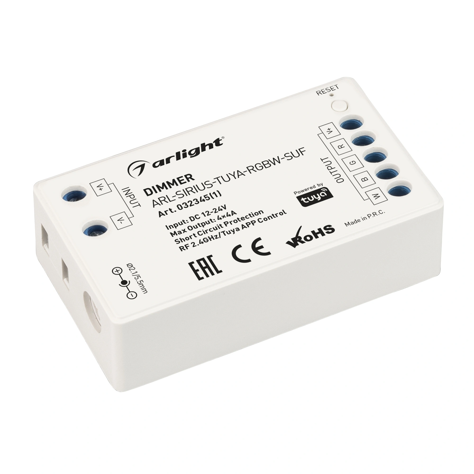Характеристики - Диммер ARL-SIRIUS-TUYA-RGBW-SUF (12-24V, 4x4A, 2.4G) (Arlight, IP20 Пластик, 3 года)