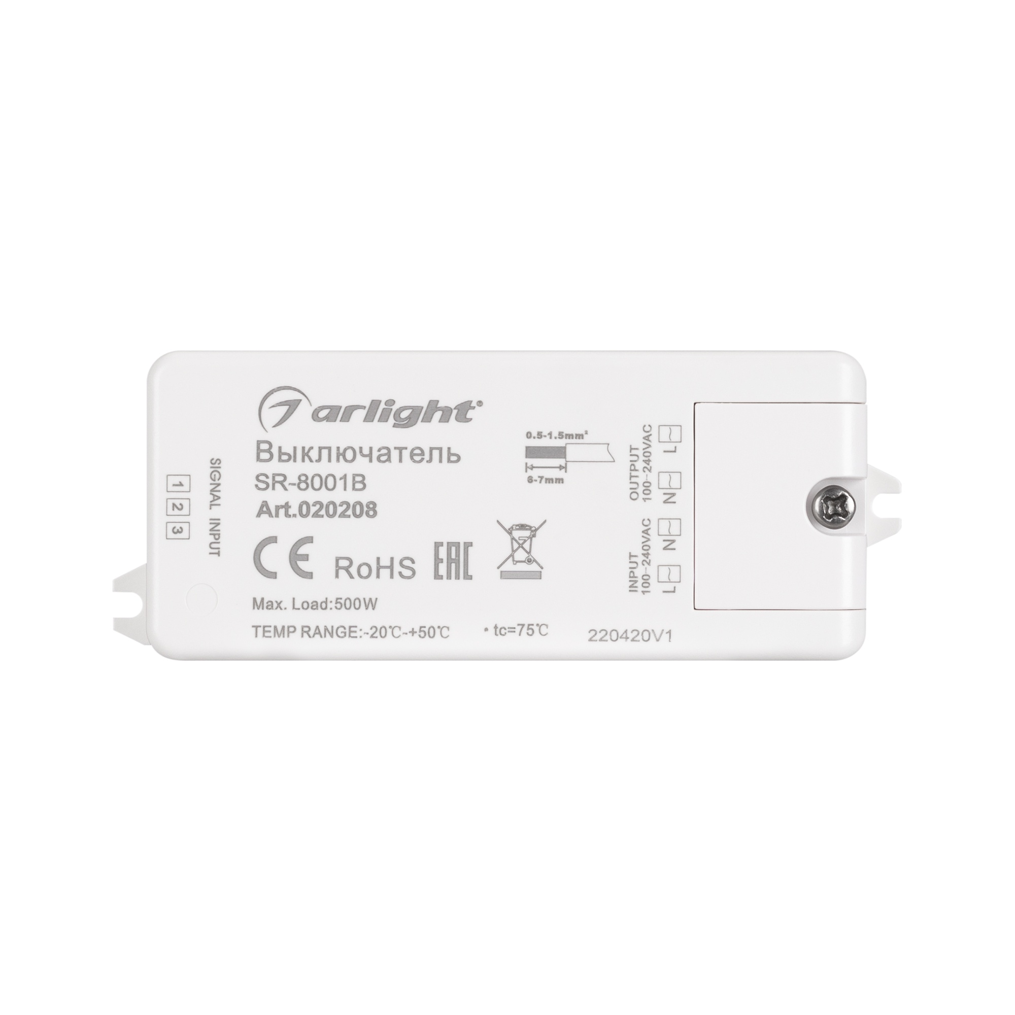 Характеристики - ИК-датчик SR-8001B Silver (220V, 500W, IR-Sensor) (Arlight, -)