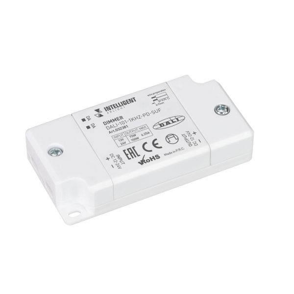 Характеристики - INTELLIGENT ARLIGHT Диммер DALI-101-1kHz-PD-SUF (12-24V, 1х6.25А) (IARL, IP20 Пластик, 5 лет)