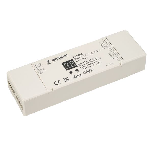 Характеристики - INTELLIGENT ARLIGHT Диммер DALI-104-MIX-DT8-SUF (12-36V, 4х5А) (IARL, IP20 Пластик, 3 года)