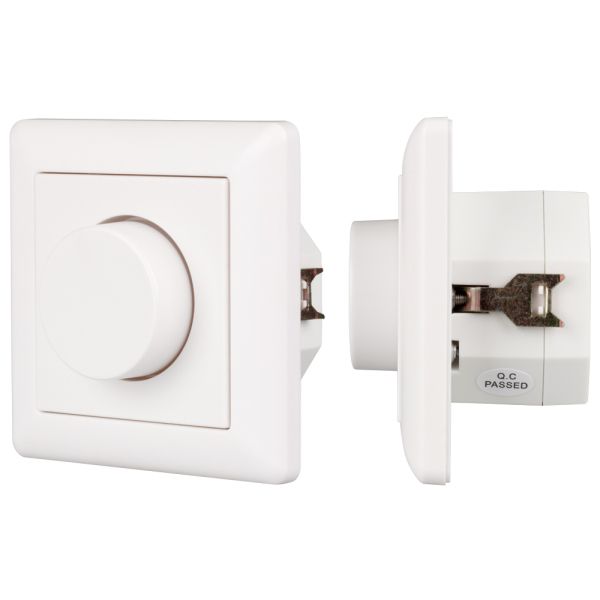 Встраиваемая пластиковая панель белого цвета с роторным вращателем (потенциометром), предназначенная для управления светодиодным или любым другим осветительным оборудованием, работающим в протоколе DALI. С помощью панели осуществляется регулировка яркости и включение/выключение света. Панель совместима с любыми исполнительными устройствами стандарта DALI. К устройству можно подключить одновременно до 32 диммеров DALI. Питание устройства осуществляется от шины DALI, либо от 230В. Установка адреса управления не требуется. Управление выполняется одновременно по всем адресам DALI (команды Broadcast). Габариты устройства составляют 81х81х54 мм, установка в стандартный подрозетник. Стандартная рамка входит в комплект поставки.