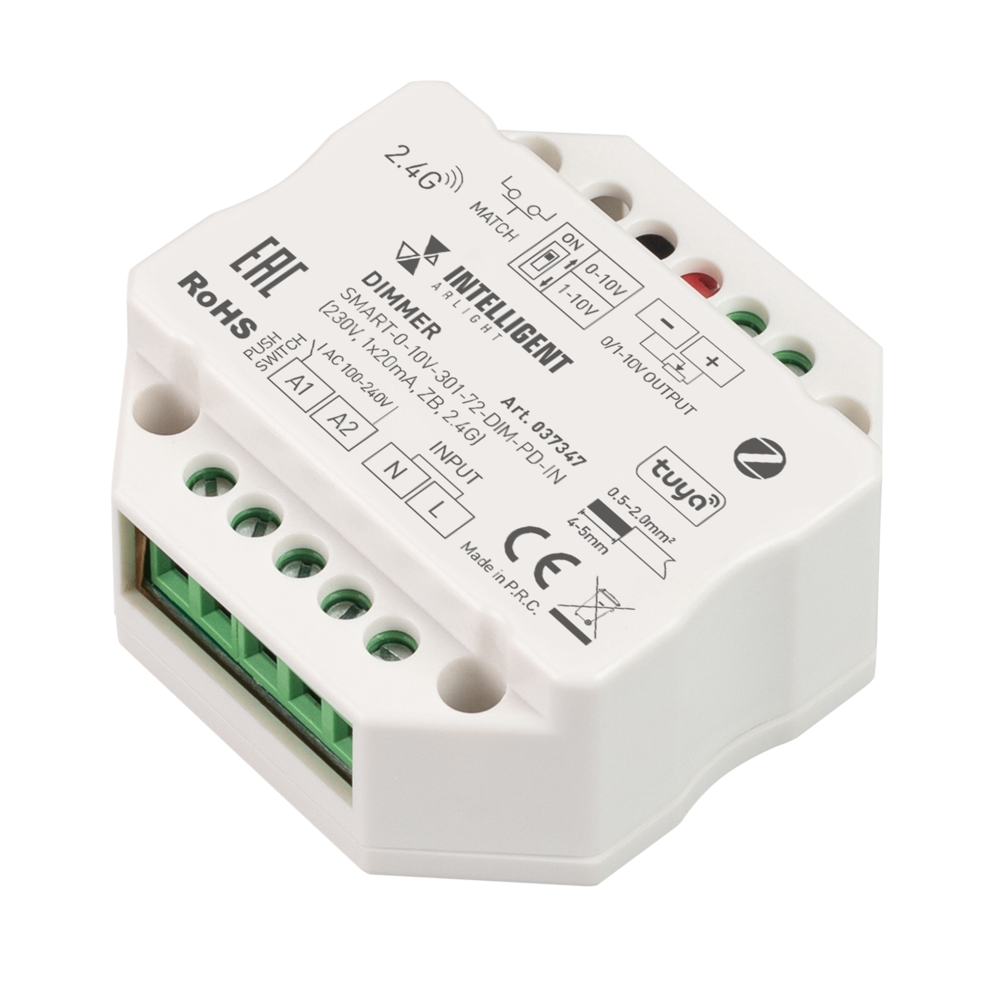 Характеристики - INTELLIGENT ARLIGHT Диммер SMART-0-10V-301-72-DIM-PD-IN (230V, 1x20mA, ZB, 2.4G) (IARL, IP20 Пластик, 5 лет)