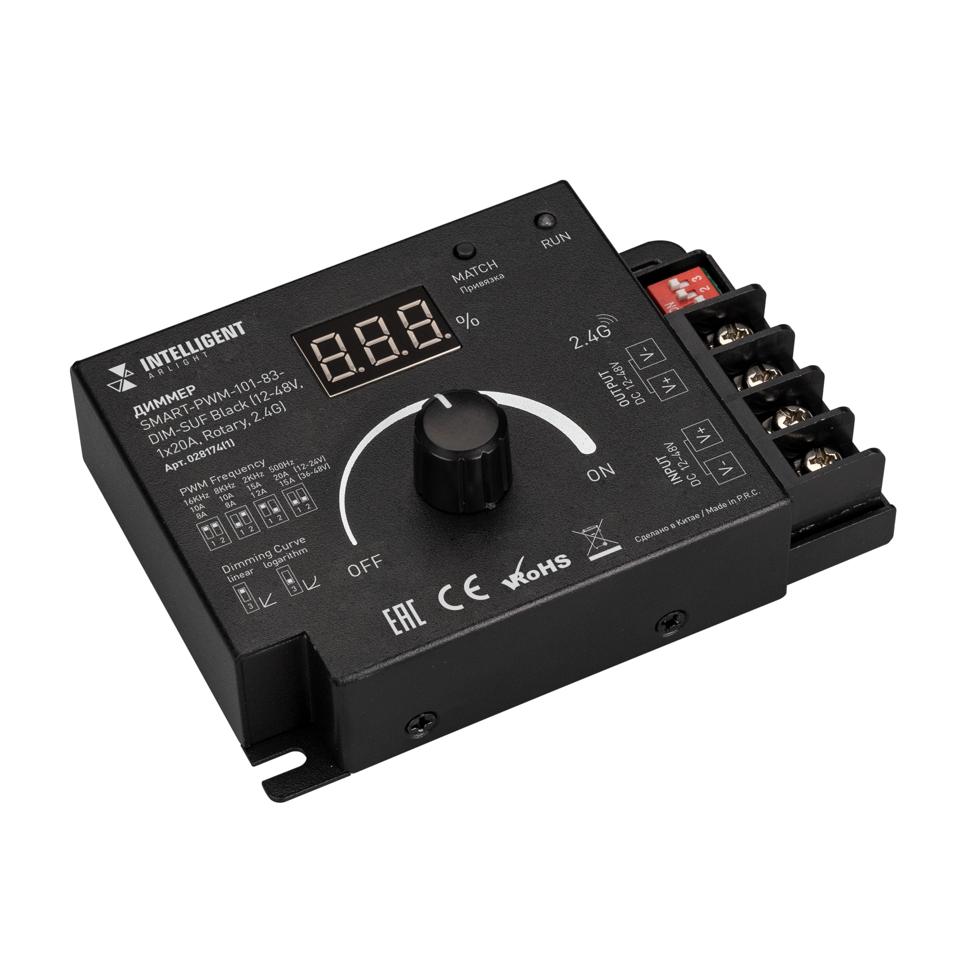 INTELLIGENT ARLIGHT Диммер SMART-PWM-101-83-DIM-SUF Black (12-48V, 1x20A, Rotary, 2.4G) (IARL, IP20 Металл, 5 лет)