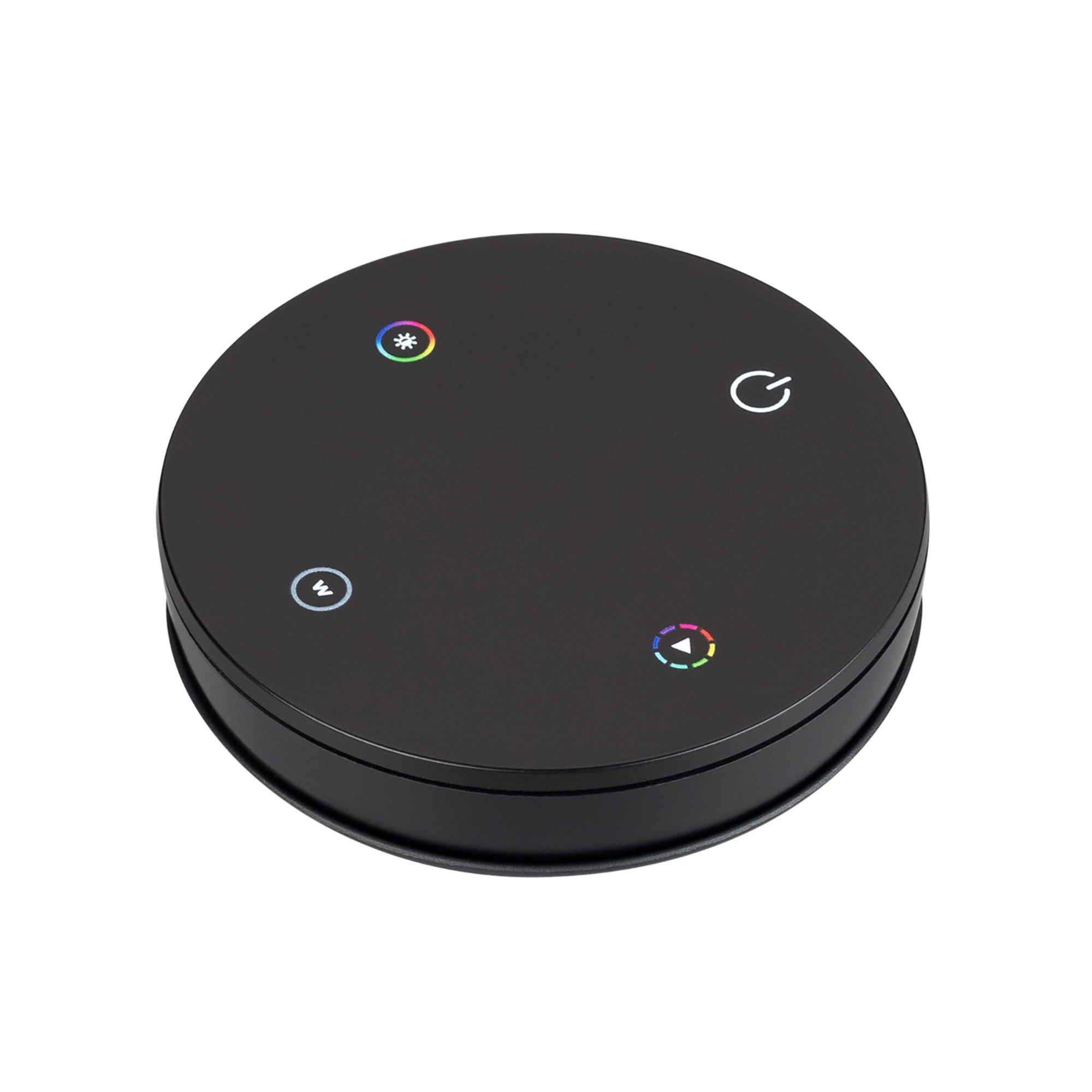 Кнопочный радиочастотный пульт чёрного цвета, предназначенный для управления мультицветными (RGB/RGBW) источниками света. Поддерживает основные функции: включение и выключение света, регулировку яркости, управление цветом, запуск и настройка динамических программ. Устройство совместимо с диммерами и контроллерами серии SMART, поддерживающими управление по радиоканалу 2.4G. К одному пульту возможно привязать неограниченное количество диммеров и контроллеров. Устройство поддерживает 1 зону управления. Питание 3В осуществляется от батарейки CR2032. Корпус пульта выполнен из пластика, защищающего от загрязнения. Магнитное основание в комплекте. Габариты устройства 75x75x18 мм.