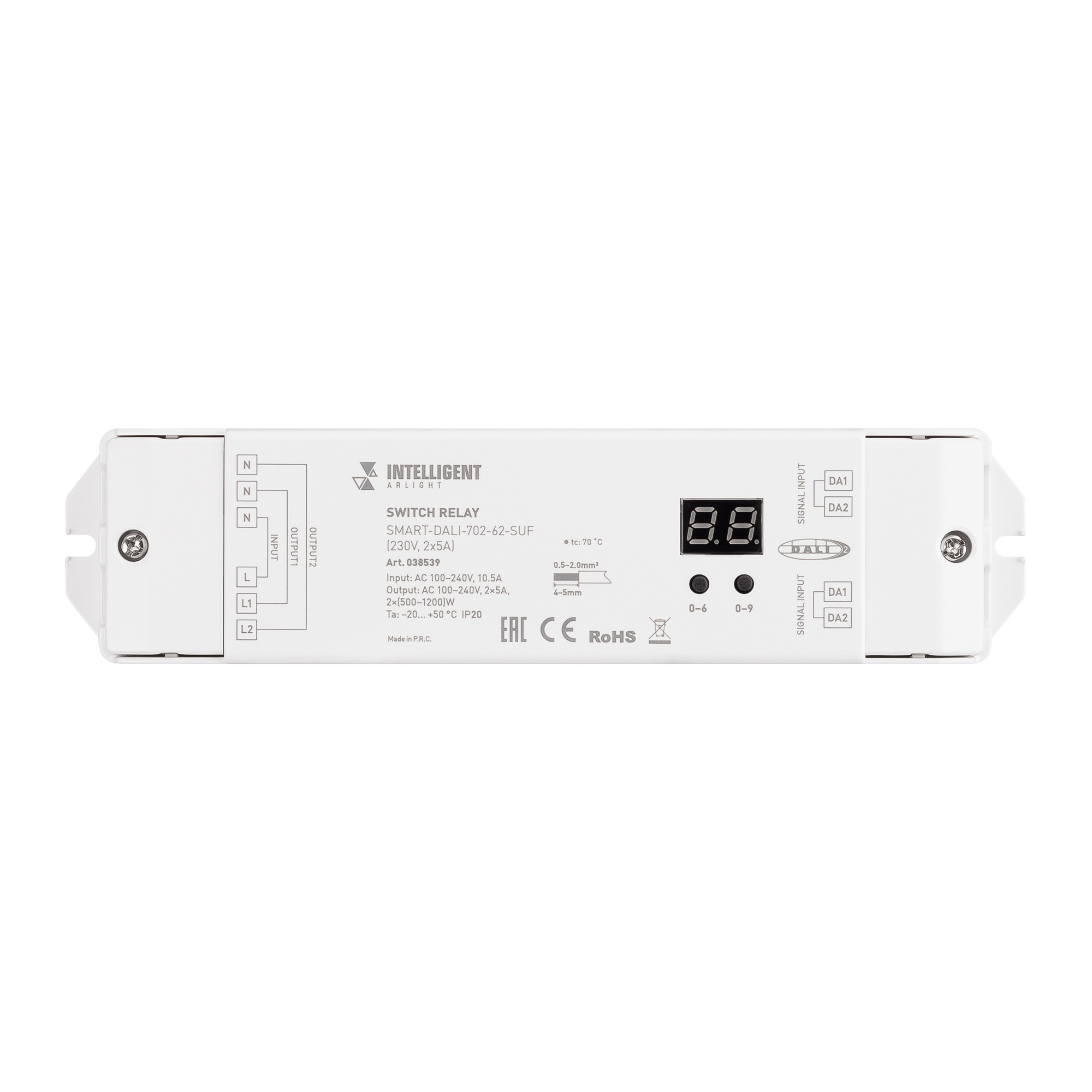INTELLIGENT ARLIGHT Релейный модуль SMART-DALI-702-62-SUF (230V, 2x5A) (IARL, IP20 Пластик, 5 лет)
