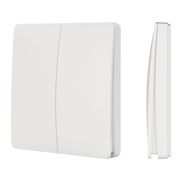 Накладная кнопочная панель белого цвета, изготовленная из пластика. Предназначена для управления одноцветными источниками света (ШИМ) с помощью кнопок. Основные выполняемые функции: включение и выключение света, регулировка яркости. Удобное и точное управление с помощью эргономичных кнопок. Изделие применяется в качестве двухзонного пульта дистанционного управления диммерами и релейными модули серий TUYA-***-WF и TY-***-WF, поддерживающими управление по радиоканалу 433MHz. Не требует питания, имеет встроенный кинетический источник питания. Габариты панели 86х86х14 мм, корпус выполнен из пластика. Устройство устанавливается на любую поверхность, к которой возможно прикрутить монтажную базу панели.