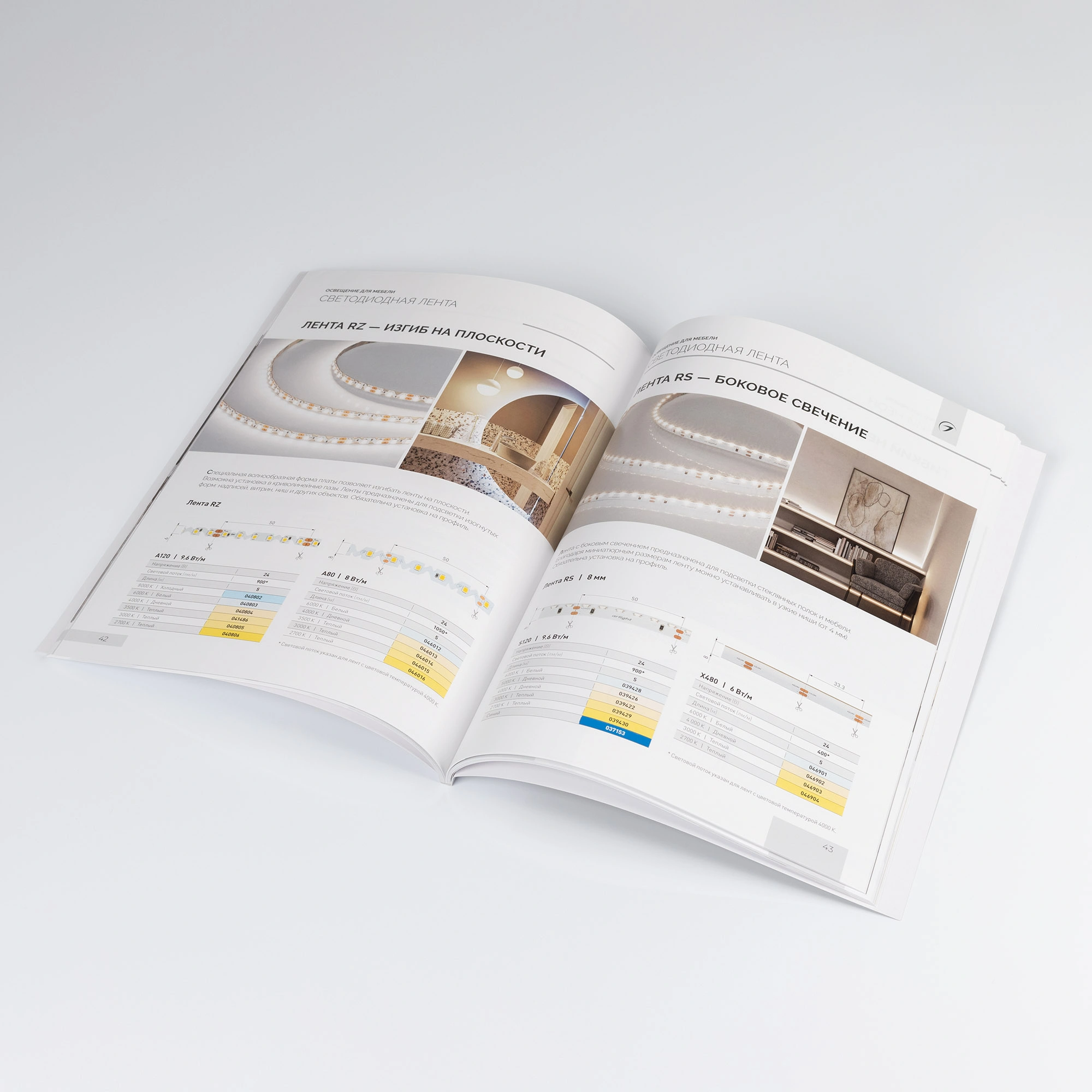 Каталог "Освещение для мебели" включает в себя описание ассортимента профилей, блоков, светодиодных лент, неона, светильников и управления светом широко применяемого в мебельной подсветке.