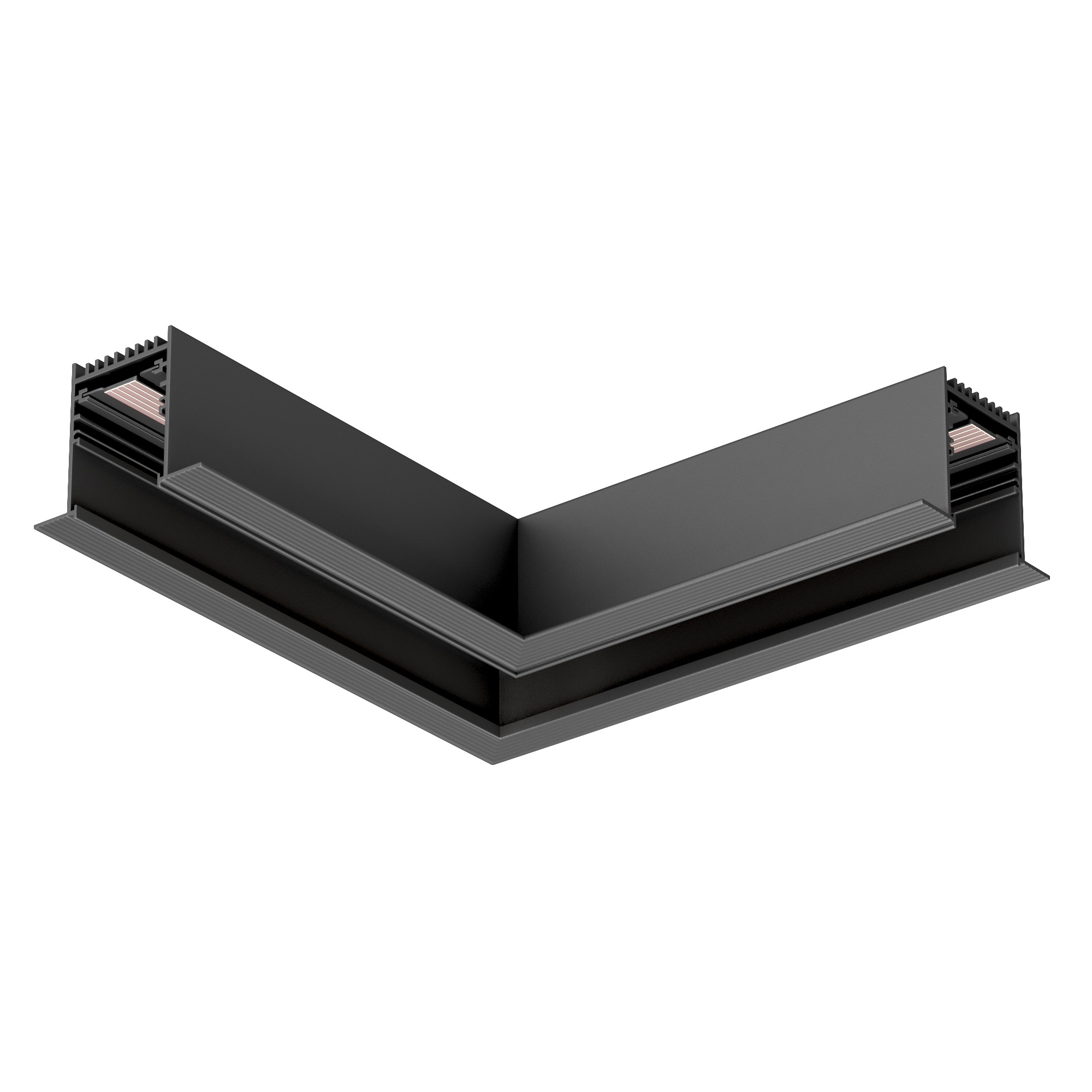 Угловой прямой коннектор MAG-CON-4560-F-L90 (BK) для встраиваемого трека MAG-TRACK-4560-F. Напряжение питания 24 В. Аксессуары для соединения с треком приобретаются отдельно.