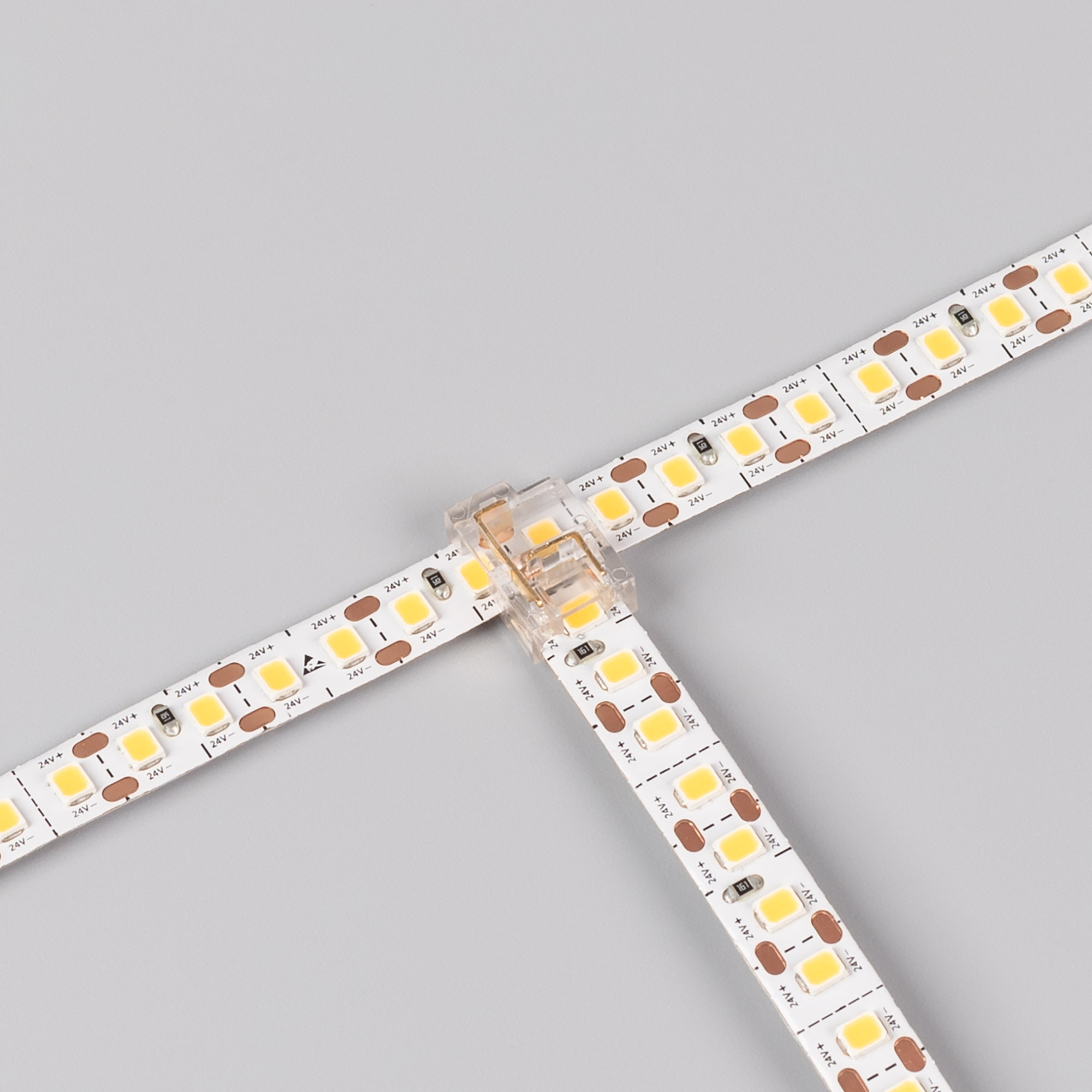 Универсальный коннектор для подключения открытых одноканальных SMD лент шириной 8 мм. Обеспечивает подключение нескольких светодиодных отрезков (STS) и проводов без пайки (STW). Позволяет создать 5 типов соединений: прямое, угловое, Т - образное, прямое подключение проводов, угловое с подключением питания, Т - образное с подключением питания, прямое с подключением питания.