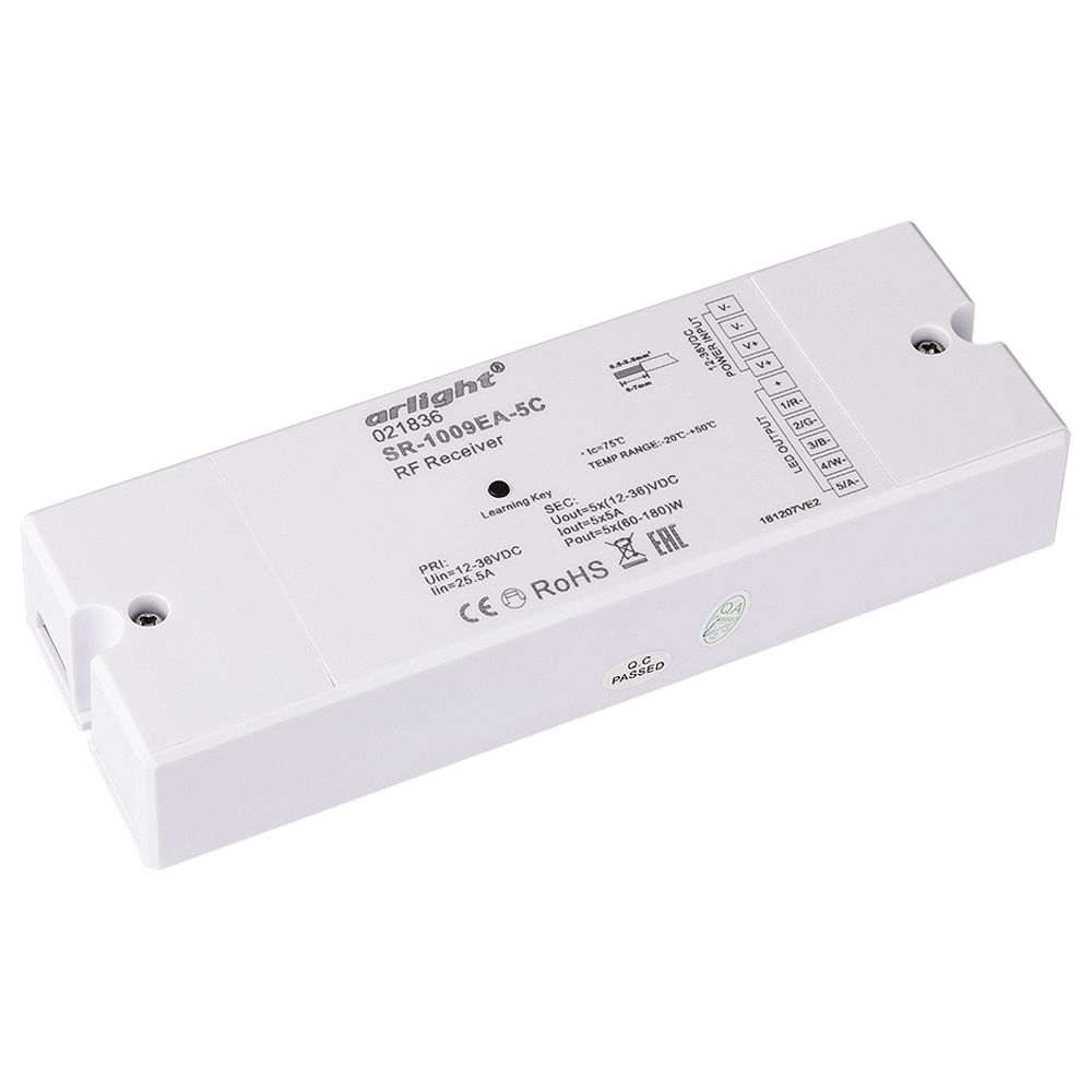 Характеристики - Контроллер SR-1009EA-5CH (12-36V, 300-900W) (Arlight, IP20 Пластик, 3 года)