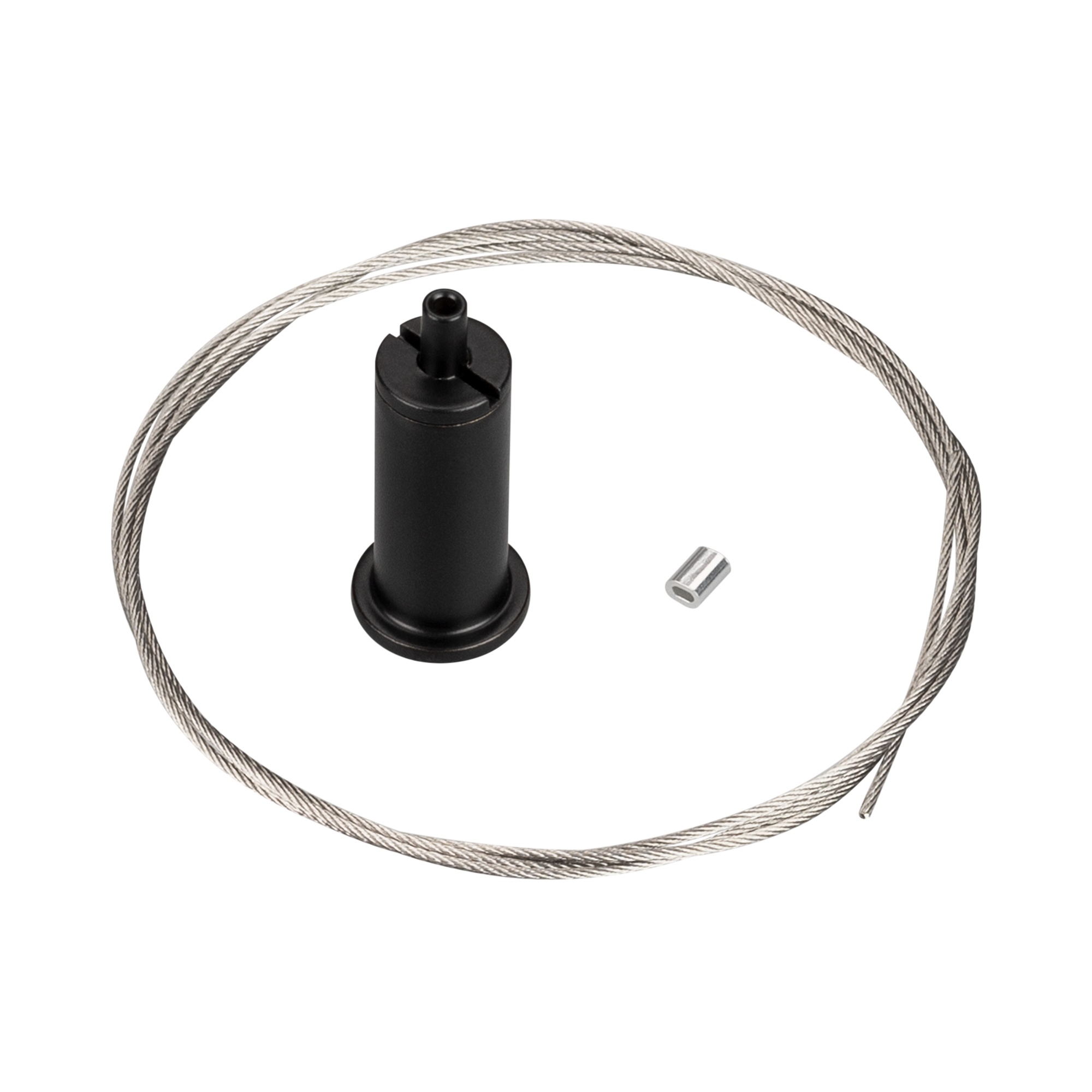 Крепёжный набор чёрного цвета, применяется для подвесного монтажа, для крепления к аксессуарам для подвесного монтажа (проушина арт. 032861 и т.д.). В комплекте тросик 1 м., потолочное крепление (кронштейн). Шуруп в комплект не входит, т.к. он подбирается в соответствии с поверхностью, на которую монтируется крепление.