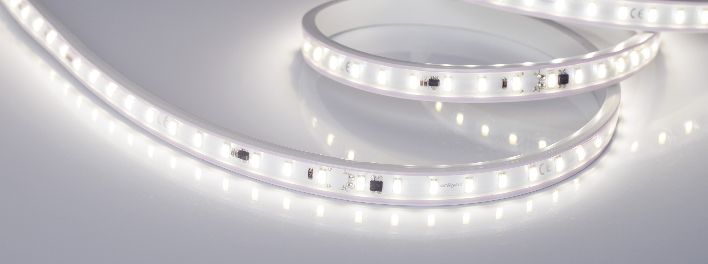 Стабилизированная лента шириной 15.5 мм в прозрачной ПВХ-оболочке с высокой степенью пылевлагозащиты (IP65). Светодиоды SMD 5630 (72 шт/м) белого цвета свечения (6000–6500 К) с индексом цветопередачи CRI>80. Напряжение питания 230 В, мощность 14 Вт/м. Прозрачные коннекторы для создания непрерывных световых линий. Лента изгибается вертикально от плоскости. Полное отсутствие пульсаций (мерцания) благодаря наличию интегрированного драйвера. Подключение напрямую к сети 230 В. Контурная подсветка, оформление наружной рекламы. Крепление на скобы. Минимальный отрезок 166.67 мм (12 светодиодов). В комплекте заглушка и провод питания.