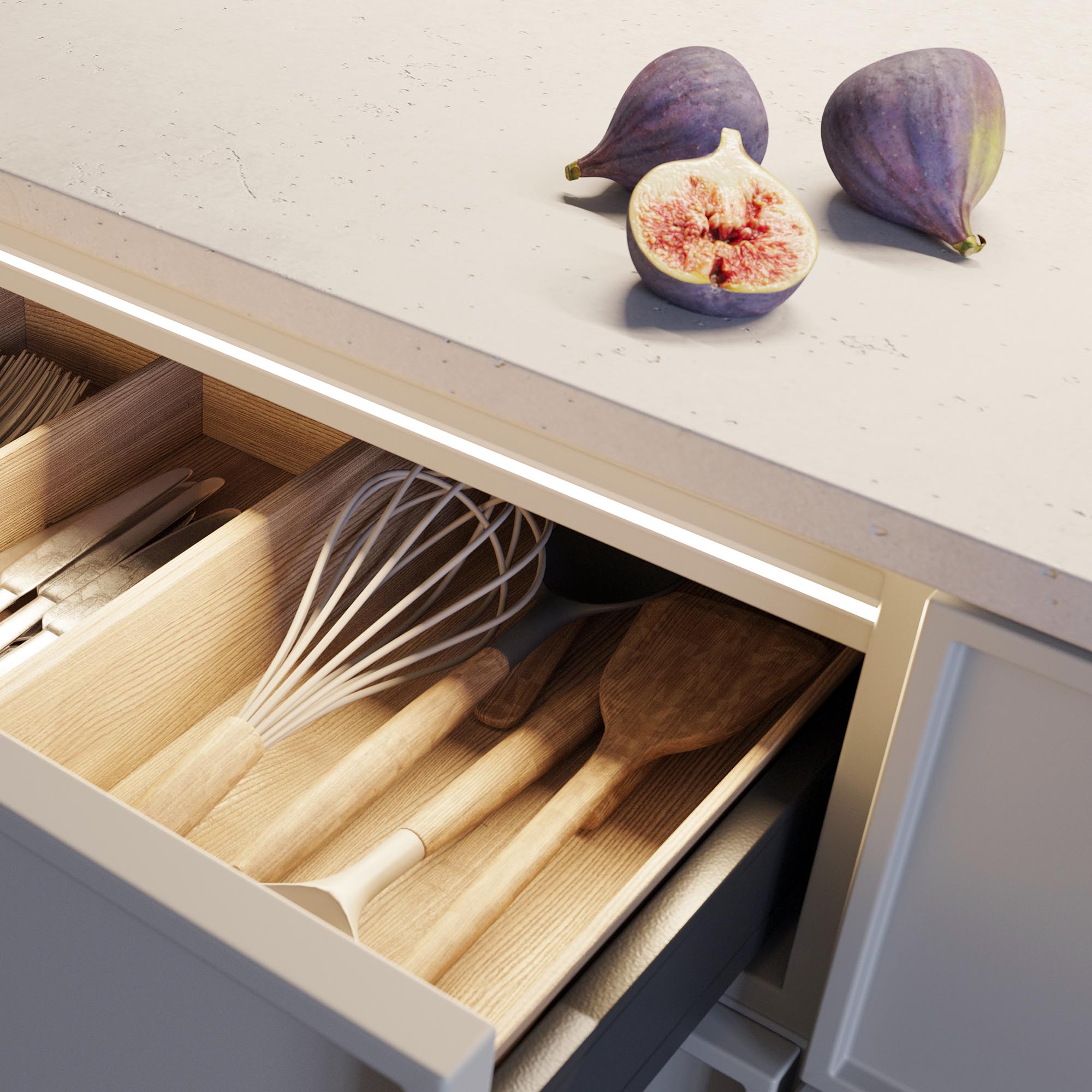 Узкая светодиодная лента сплошного свечения COB серии X400 шириной 3 мм, мощностью 4.8 Вт/м. Цвет свечения теплый (2700K). Напряжение питания 24 В. Светодиоды CSP, 400 шт/м. Высокий индекс цветопередачи CRI>90 обеспечивает точное восприятие цветовых оттенков при освещении любых жилых, офисных или производственных помещений. Минимальный отрезок 20 мм. Эффект сплошной линии света создается без применения рассеивающих экранов. Узкая плата позволяет установить ленту в тонкий паз, применяется для подсветки витрин, рекламных конструкций, мебели, полок.