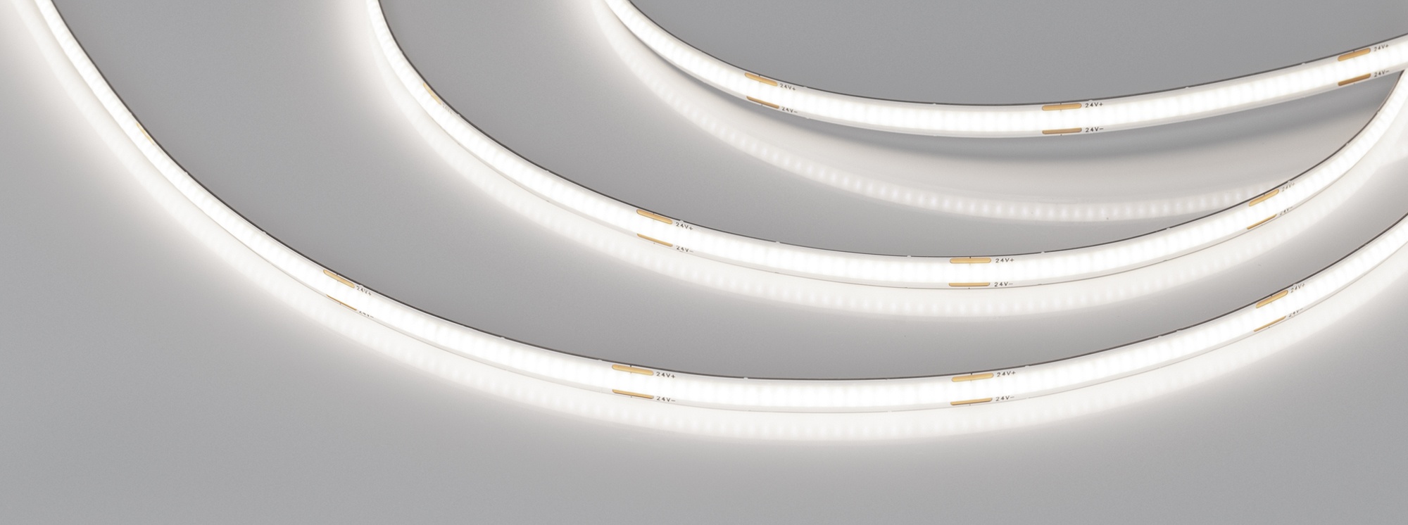 Светодиодная лента COB серии X480, светодиоды CSP, 480 светодиодов на метр, мощность 6 Вт/м. Высокий индекс цветопередачи CRI>90 обеспечивает точное восприятие цветовых оттенков при освещении любых жилых, офисных или производственных помещений. Предназначена для декоративной подсветки интерьера, позволяет создать эффект сплошной идеальной линии света без применения рассеивающих экранов. Используется для рекламных конструкций и витрин. Максимальная длина подключения 4 м. Рекомендуется установка на профиль.