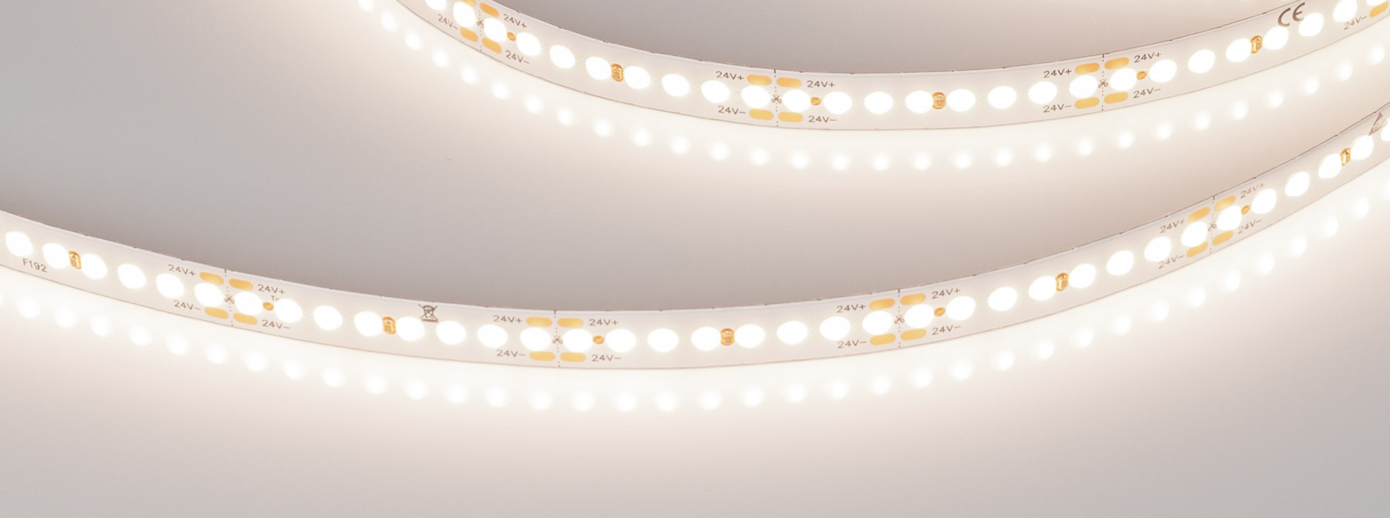 Светодиодная лента DOT с видимой световой точкой серии X192, шириной 8 мм, мощностью 16 Вт/м. Напряжение питания 24 В. Светодиоды CSP, 192 шт/м, дневного цвета свечения (4000K). Минимальный отрезок 41.67 мм (8 светодиодов). Декоративная лента DOT с видимыми точками светодиодов предназначена для подсветки интерьера, оформления рекламы, подсветки ниш, потолков.