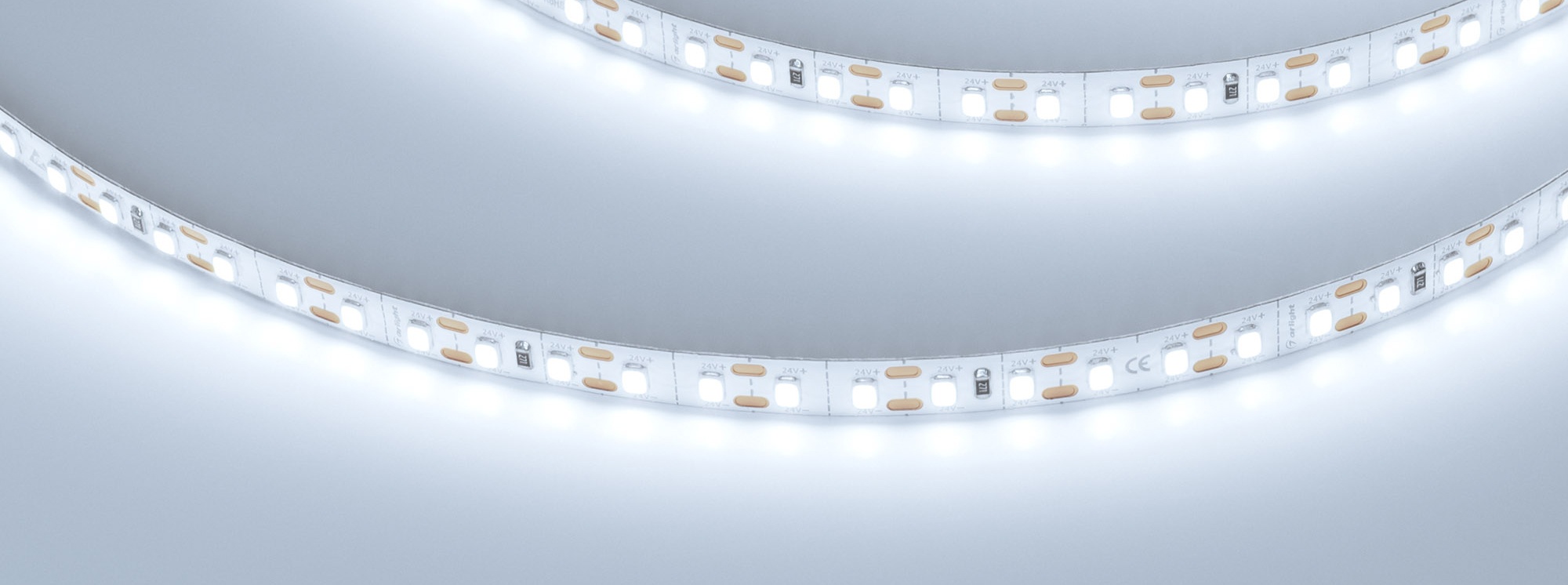 Светодиодная лента FC серии A120, шириной 8 мм, мощностью 10 Вт/м, с малым шагом резки. Напряжение питания 24 В. Светодиоды SMD 2835, 120 шт/м, белого цвета свечения (6000K). Высокий индекс цветопередачи CRI>90 позволяет точно воспринимать цвета при освещении любых интерьеров жилых и коммерческих помещений. Малый шаг резки 8.33 мм позволяет получить отрезок оптимальной длины. Используется для декоративной подсветки рекламных конструкций и витрин. Применяется для основного освещения. Обязательна установка на профиль.