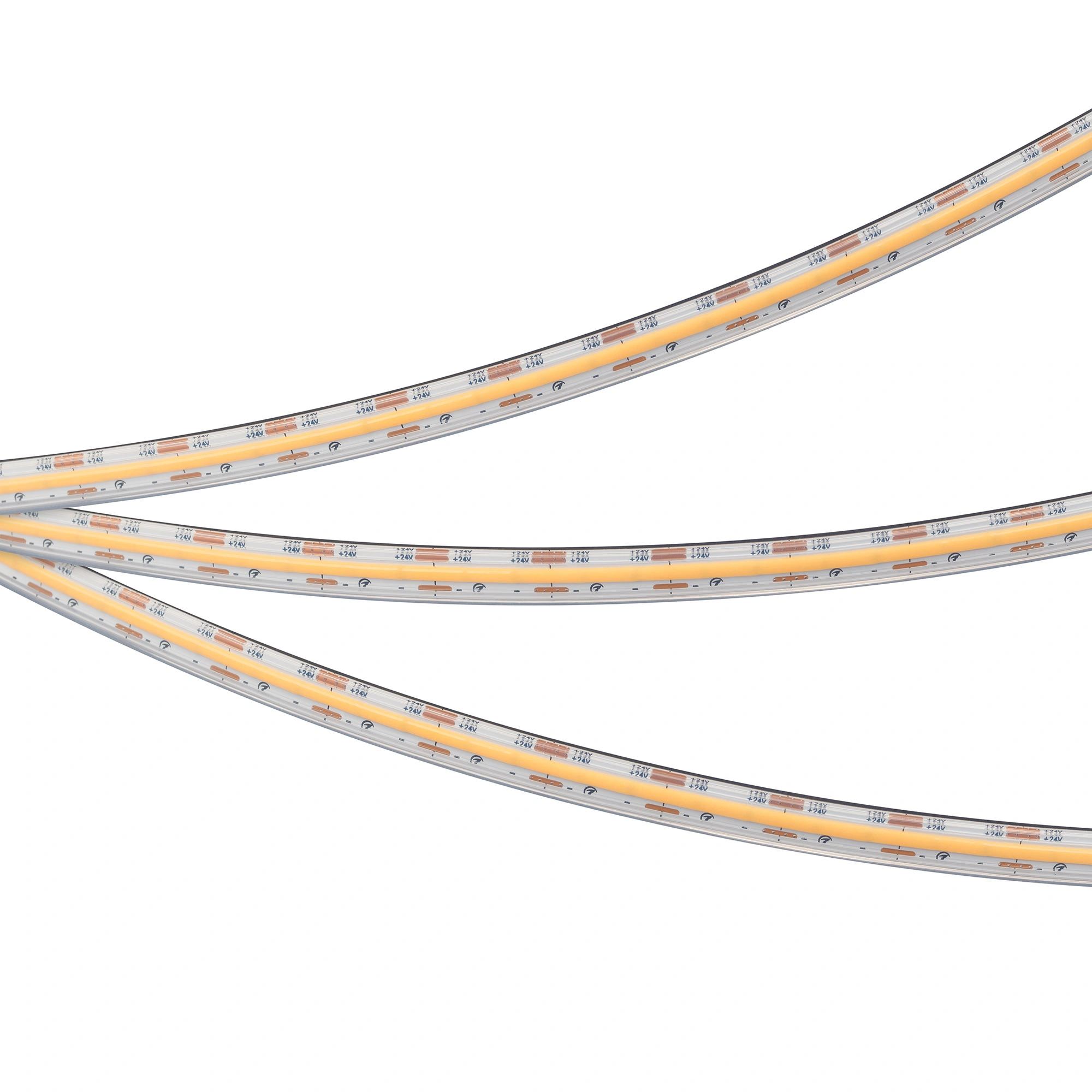 Светодиодная герметичная лента сплошного свечения COB серии X560, IP67. Напряжение питания 24 В, мощность 9.6 Вт/м, ширина 12 мм. Светодиоды CSP, 560 шт/м, дневного цвета свечения (4000K). Высокий индекс цветопередачи CRI>90 обеспечивает точное восприятие цветовых оттенков при освещении любых жилых, офисных или производственных помещений. Позволяет создать эффект сплошной идеальной линии света без применения рассеивающих экранов. Применяется для подсветки на улице и во влажных зонах в помещениях. Равномерное свечение обеспечивается по всей длине ленты при подключении до 10 м с одной стороны. Поставка на катушке 10 м. В комплекте: пластиковые клипсы 20 шт, силиконовые заглушки глухие 4 шт, силиконовые заглушки под провод 4 шт. Рекомендуется установка на профиль.