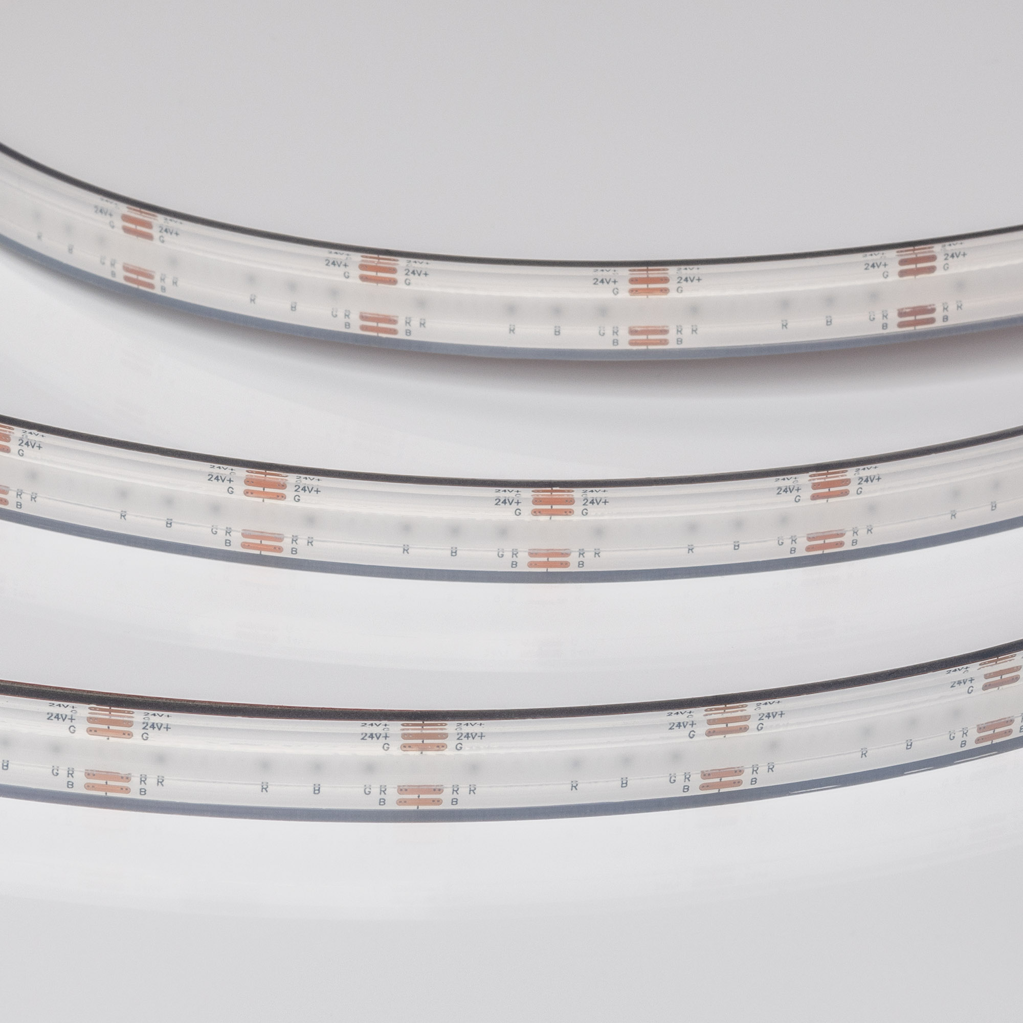 Светодиодная герметичная лента CSP сплошной засветки без видимых светодиодов серии X540 позволяет создавать равномерное и однородное свечение без точек, имеет повышенную световую эффективность и улучшенные теплорассеивающие свойства. Степень защиты IP68, полная силиконовая экструзия. Светодиоды CSP, 540 шт/м, цвет свечения RGB, трехканальная лента с четырьмя проводами для подключения. Управляется RGB-контроллером. Лента с широким спектром применения, подходит для организации подсветки в сауне, устойчива к применению в хлорированной водной среде, применяется для подсветки бассейнов (погружение на глубину до 2 м). Компоненты ленты устойчивы к широкому диапазону температур, за счет чего лента может применяться в условиях высоких и низких температур (TWP - Thermal Waterproof), диапазон рабочих температур окружающей среды -40..100°C. Для удобства монтажа лента имеет увеличенный кабель длиной 2 м. В комплекте силиконовые скобы 10 шт, силиконовая заглушка глухая 2 шт, силиконовая заглушка под провод 2 шт.