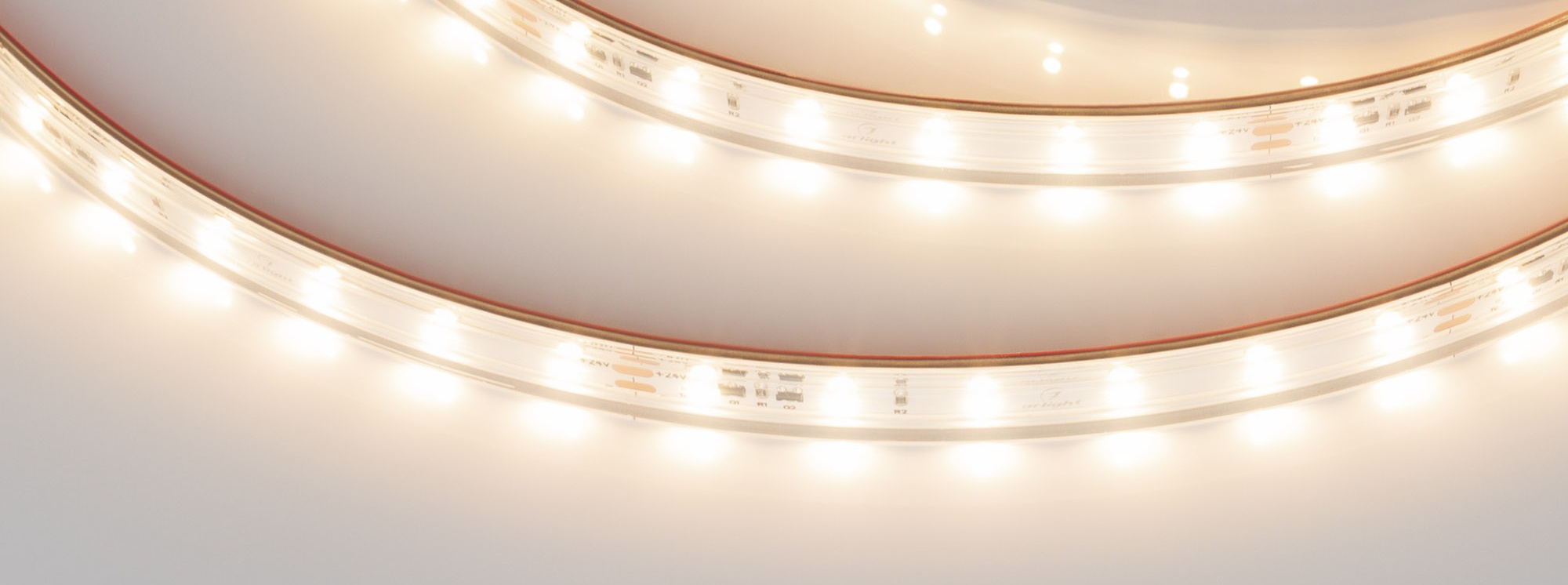 Стабилизированная герметичная лента IC серии A60 шириной 10 мм, мощностью 4.8 Вт/м, с подключением до 10 м. Стабилизаторы тока обеспечивают равномерное свечение теплого цвета (3000K) по всей длине при подключении с одной стороны. Напряжение питания 24 В. Светодиоды SMD 2835, 60 шт/м. Индекс цветопередачи CRI>80. Минимальный отрезок 100 мм (6 светодиодов). Лента совместима с любыми диммерами ШИМ. Применяется для декоративной подсветки потолочных ниш, создания длинных непрерывных световых линий, контуров рекламных объектов.
