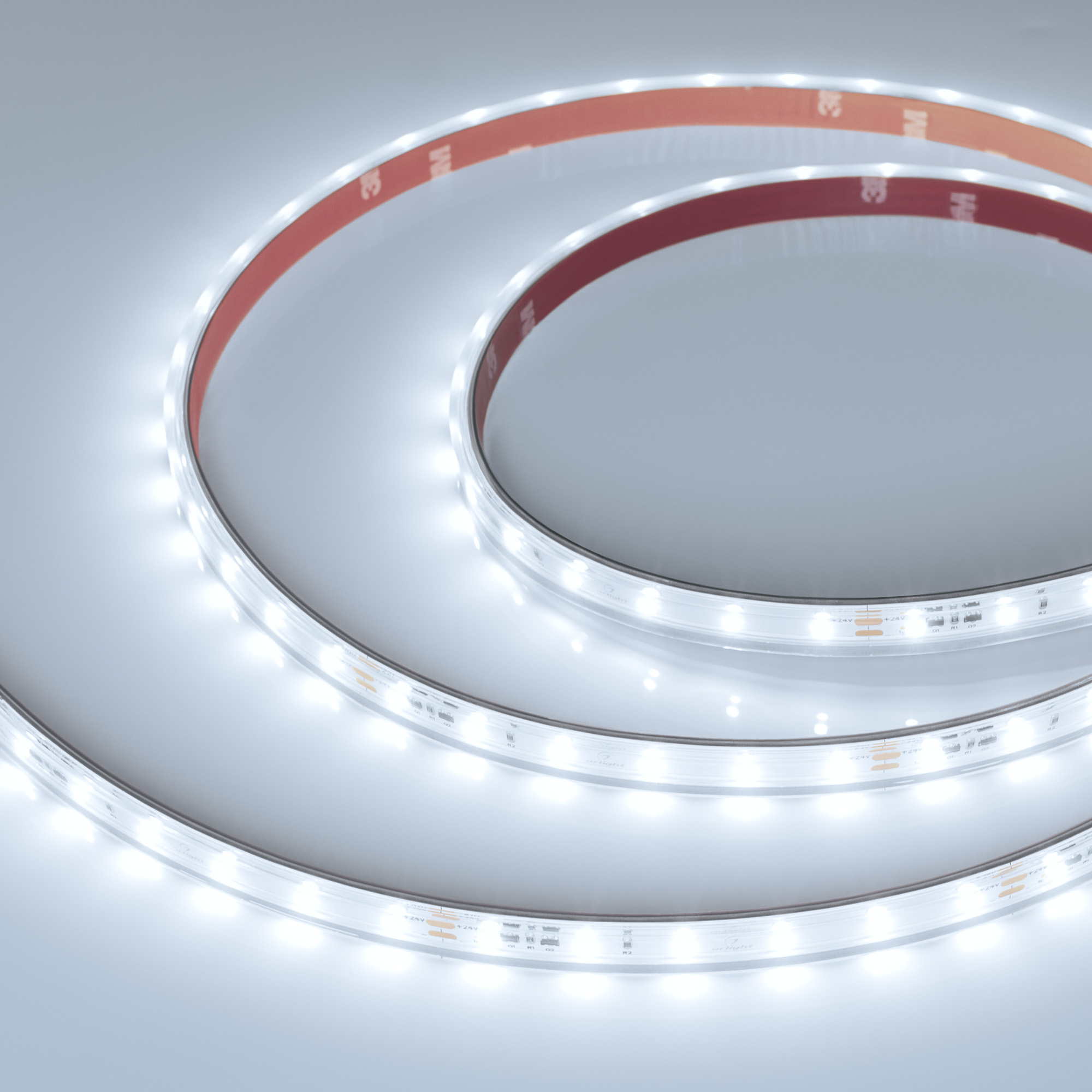 Стабилизированная герметичная лента IC серии A60 шириной 10 мм, мощностью 4.8 Вт/м, с подключением до 10 м. Стабилизаторы тока обеспечивают равномерное свечение теплого цвета (6000K) по всей длине при подключении с одной стороны. Напряжение питания 24 В. Светодиоды SMD 2835, 60 шт/м. Индекс цветопередачи CRI>80. Минимальный отрезок 100 мм (6 светодиодов). Лента совместима с любыми диммерами ШИМ. Применяется для декоративной подсветки потолочных ниш, создания длинных непрерывных световых линий, контуров рекламных объектов.
