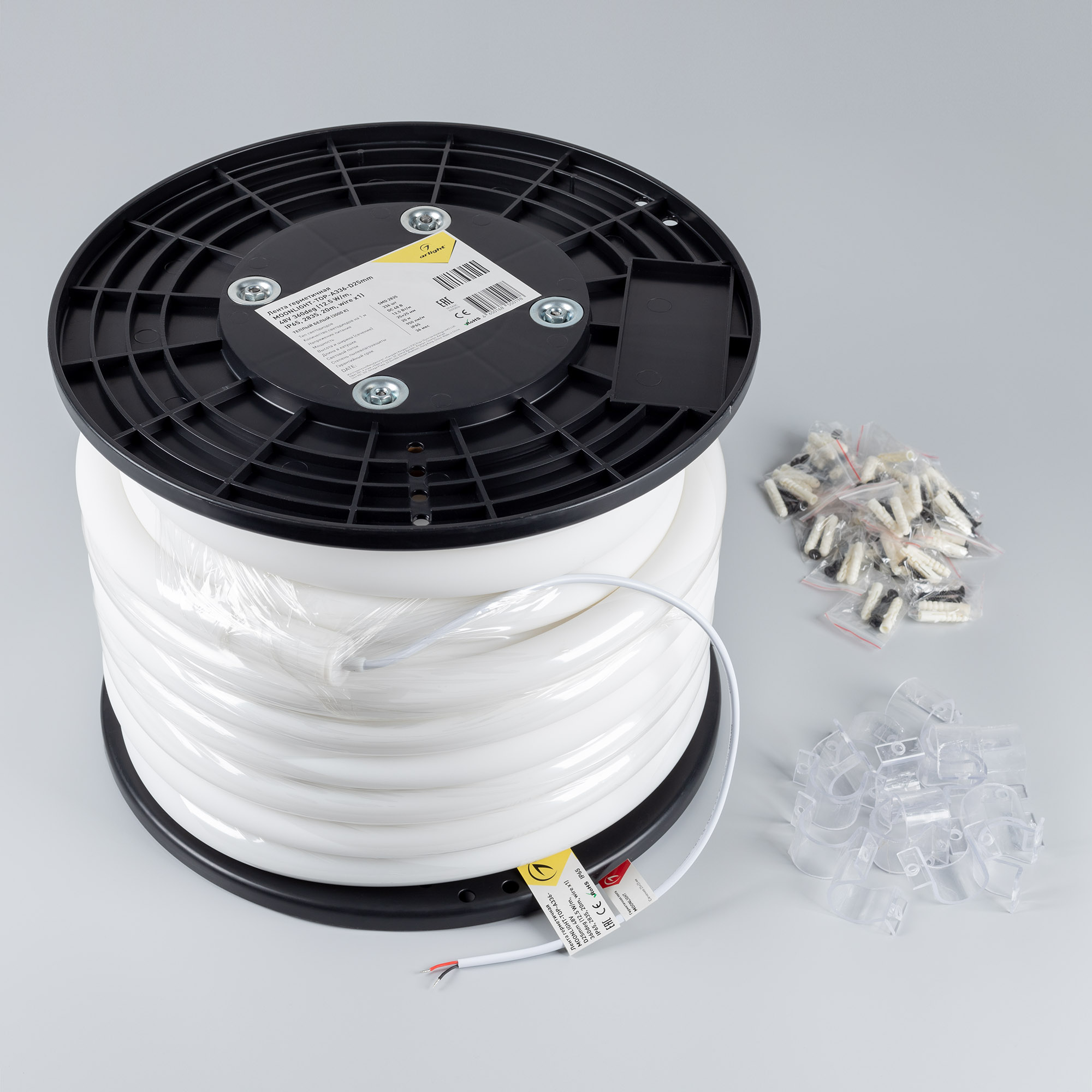 Характеристики - Лента герметичная MOONLIGHT-TOP-A336-D25mm 48V Warm3000 360deg (12.5 W/m, IP65, 2835, 20m, wire x1) (Arlight, Вывод прямой, 3 года)