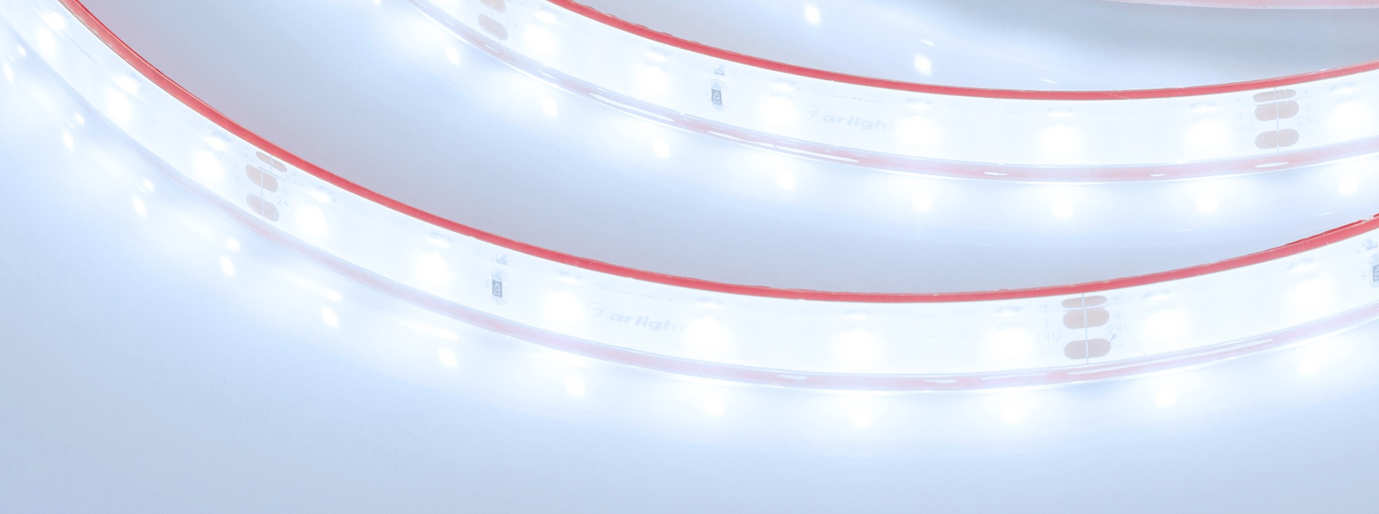 Светодиодная герметичная лента RTW серии A60, шириной 11 мм, мощностью 4.8 Вт/м, со степенью влагозащиты IP68, полная силиконовая экструзия. Напряжение питания 24 В. Светодиоды SMD 2835, 60 шт/м, холодного цвета свечения (8000K). Минимальный отрезок 100 мм (6 светодиодов). Индекс цветопередачи CRI>85. Применяется для декоративной подсветки любых жилых, коммерческих помещений, декоративной подсветки интерьеров, потолочных ниш, рабочих зон кухни, влажных зон, наружной рекламы и витрин. В комплекте силиконовые клипсы для установки.