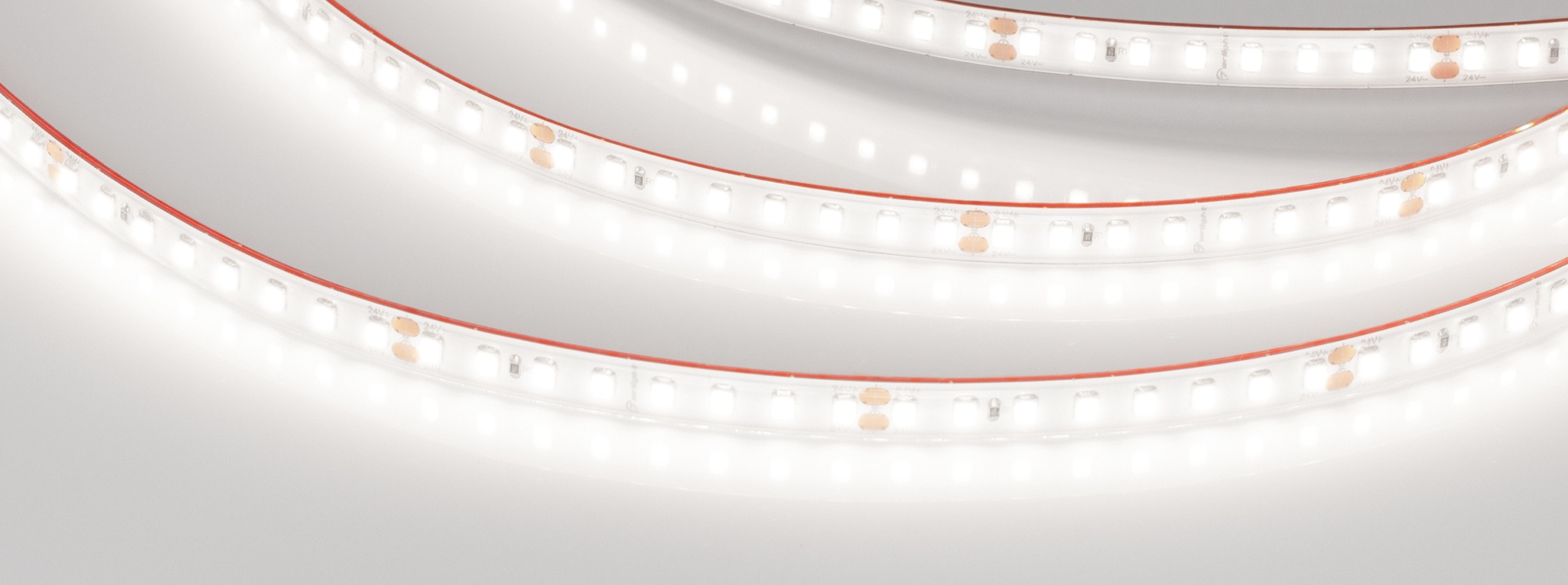 Светодиодная герметичная лента RTW серии A128 шириной 10 мм, мощностью 9.6 Вт/м, степень защиты IP66, прозрачная силиконовая трубка. Напряжение питания 24 В. Светодиоды SMD 2835, 128 шт/м, белого цвета свечения (6000K). Минимальный отрезок 62.5 мм (8 светодиодов). Применяется для декоративной подсветки любых жилых, коммерческих помещений, декоративной подсветки интерьеров, потолочных ниш, рабочих зон кухни, влажных зон, наружной рекламы и витрин. В комплекте силиконовые клипсы для установки.