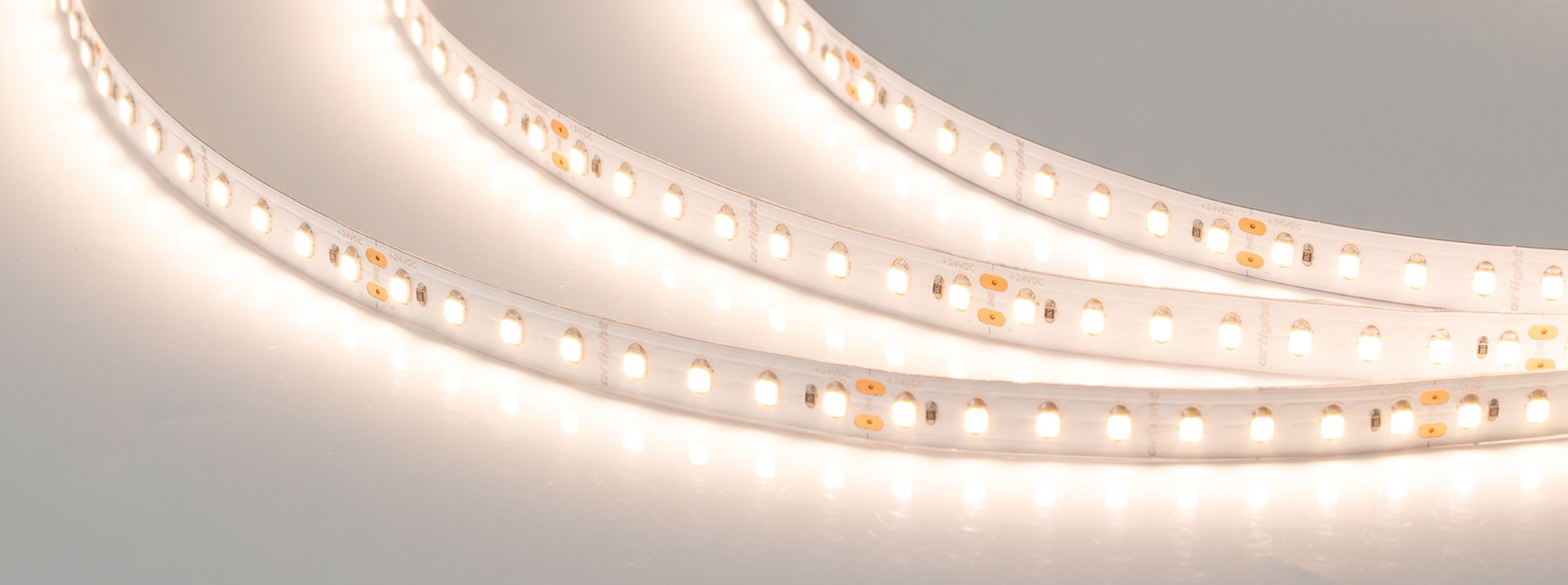 Светодиодная герметичная специализированная лента SHOP серии A112 с защитным нанопокрытием SC для освещения продуктов питания, IP54. Тип светодиода SMD 2835, 112 светодиодов на метр, мощность 18.4 Вт/м. Напряжение питания 24 В. Цвет свечения теплый (3000K), высокий индекс цветопередачи CRI>95. Минимальный отрезок 71.43 мм (8 светодиодов). Специально разработанный спектр для подсветки фруктов в торговых и демонстрационных залах, магазинных витринах. Обязательна установка на профиль.