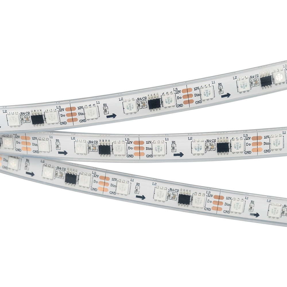 Характеристики - Лента герметичная SPI-P-B60-12mm 12V RGB-PX3 (14.4W/m, IP66, 5060, 5m) (Arlight, бегущий огонь)