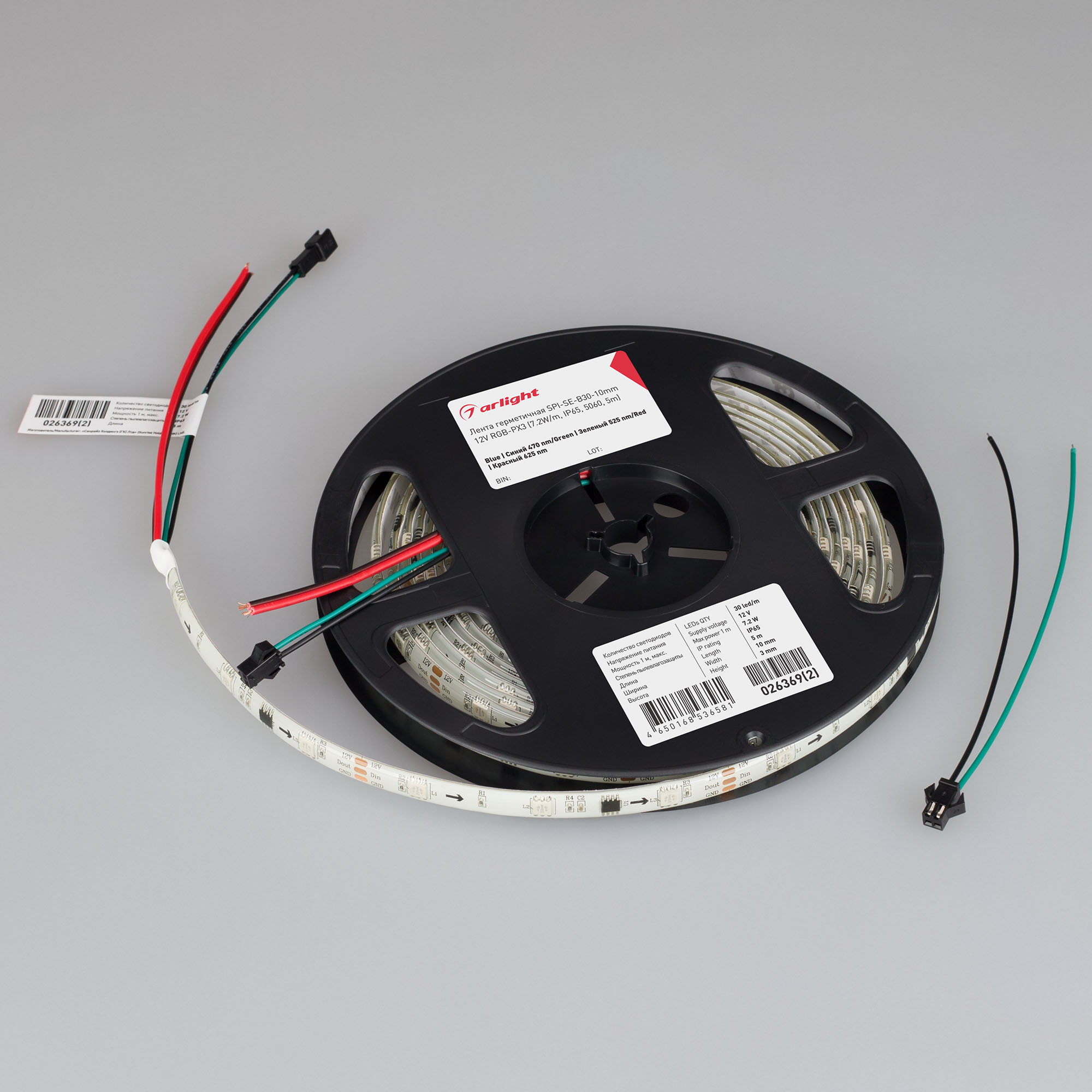 Характеристики - Лента герметичная SPI-SE-B30-10mm 12V RGB-PX3 (7.2W/m, IP65, 5060, 5m) (Arlight, бегущий огонь)