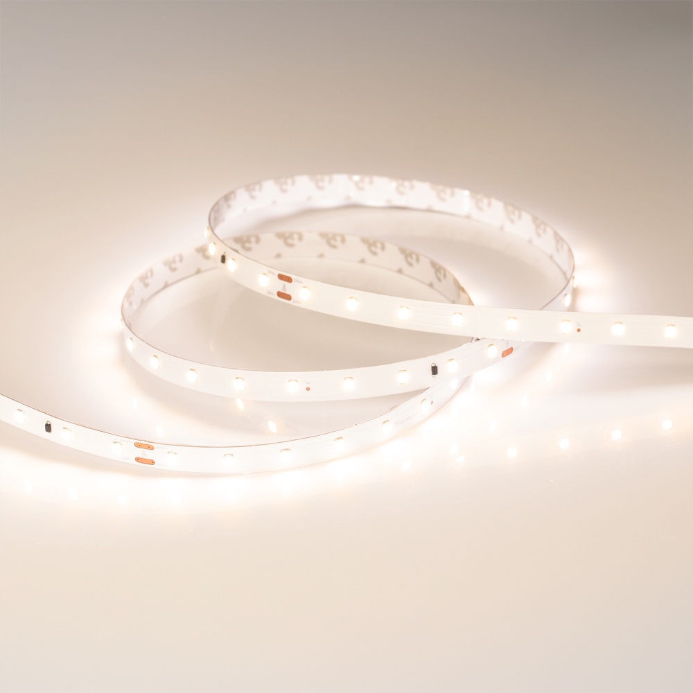 Стабилизированная лента длиной 30 метров и шириной 10 мм. Стабилизаторы тока обеспечивают равномерное свечение по всей длине ленты даже при подключении только с одной стороны. Светодиоды SMD 2835 (60 шт/м) теплого белого цвета свечения (2900–3100 K) с индексом цветопередачи CRI>85. Мощность 4.6 Вт/м, напряжение питания 24 В. Подсветка потолочных ниш, декоративная подсветка, создание контуров рекламных объектов. Совместима с любыми диммерами (ШИМ). Минимальный отрезок 166.67 мм (10 светодиодов).