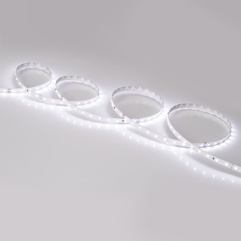 Стабилизированная лента длиной 30 метров и шириной 10 мм. Стабилизаторы тока обеспечивают равномерное свечение по всей длине ленты даже при подключении только с одной стороны. Светодиоды SMD 2835 (60 шт/м) белого цвета свечения (5600–6500 K) с индексом цветопередачи CRI>85. Мощность 4.6 Вт/м, напряжение питания 24 В. Подсветка потолочных ниш, декоративная подсветка, создание контуров рекламных объектов. Совместима с любыми диммерами (ШИМ). Минимальный отрезок 166.67 мм (10 светодиодов).
