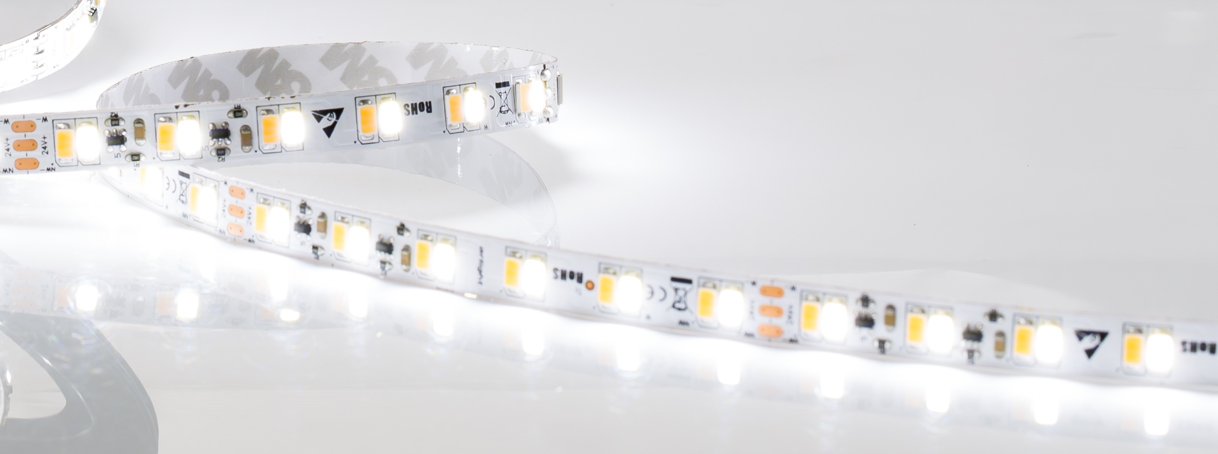Задает любой тон белого освещения в широком диапазоне от теплого до холодного. MIX - 2 канальная лента, 3 провода для подключения, тон изменяется при смене каналов. Управляется любым MIX-контроллером. Высокая эффективность >100 лм/Вт. Основное освещение. Декоративная подсветка ниш. Подсветка рекламных конструкций и витрин.