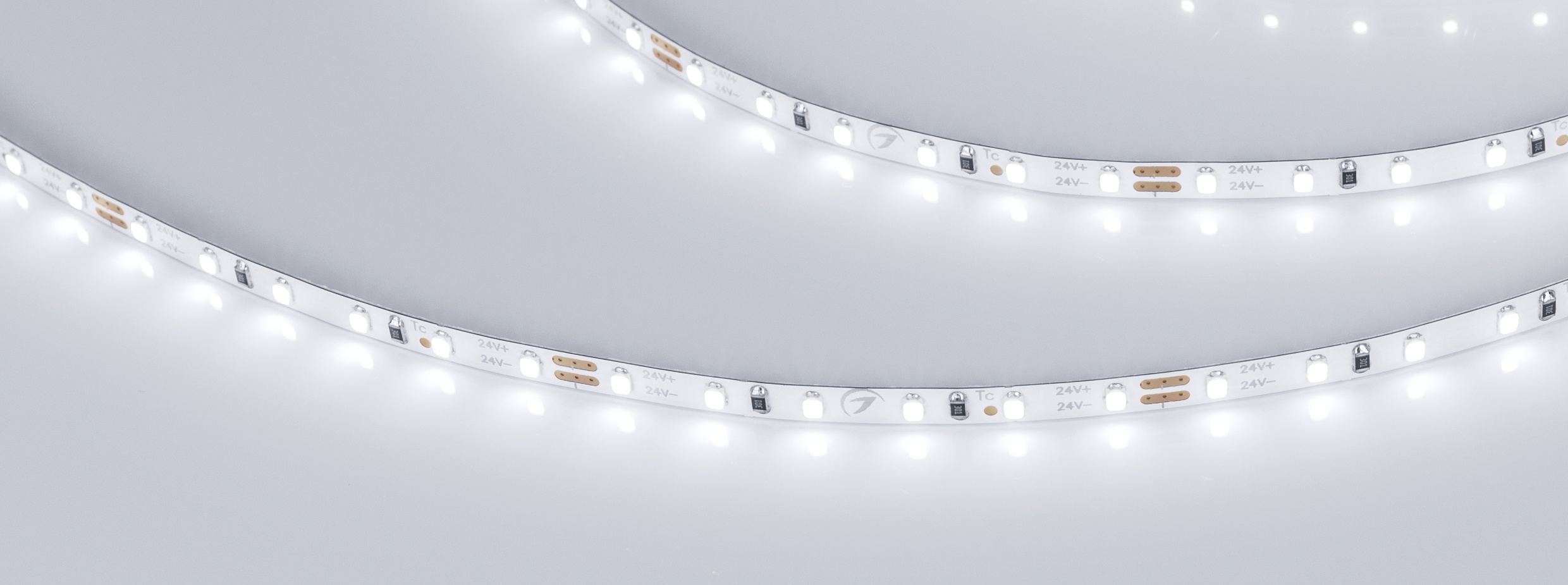 Узкая маломощная лента MICROLED шириной 4 мм с высоким индексом цветопередачи (CRI>90). Светодиоды SMD 2216 (120 шт/м) белого цвета свечения (5500–6000 K). Мощность 5.4 Вт/м, напряжение питания 24 В. Применяется для подсветки интерьеров, витрин, торцевой подсветки стеклянных полок и элементов мебели. Также используется для подсветки рекламы. Минимальный отрезок 50 мм (6 светодиодов).