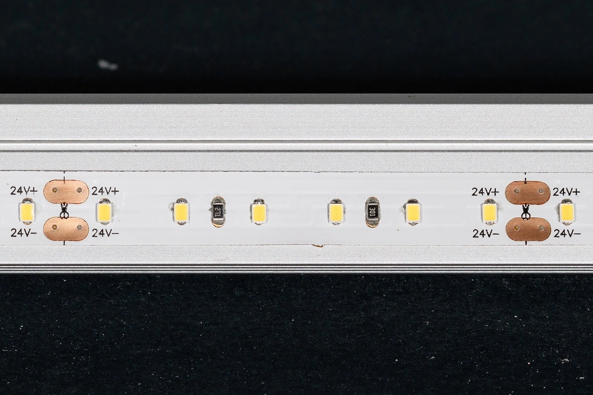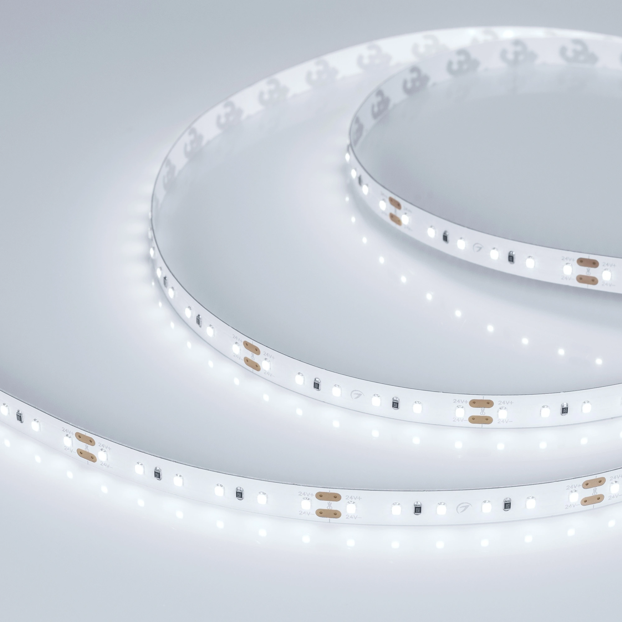 Маломощная лента MICROLED шириной 8 мм с высоким индексом цветопередачи (CRI>90). Светодиоды SMD 2216 (120 шт/м) белого цвета свечения (5800–6500 K). Мощность 6.5 Вт/м, напряжение питания 24 В. Сниженное энергопотребление. Декоративная подсветка интерьеров, потолочных ниш, рабочих зон кухни и мебели. Минимальный отрезок 50 мм (6 светодиодов).