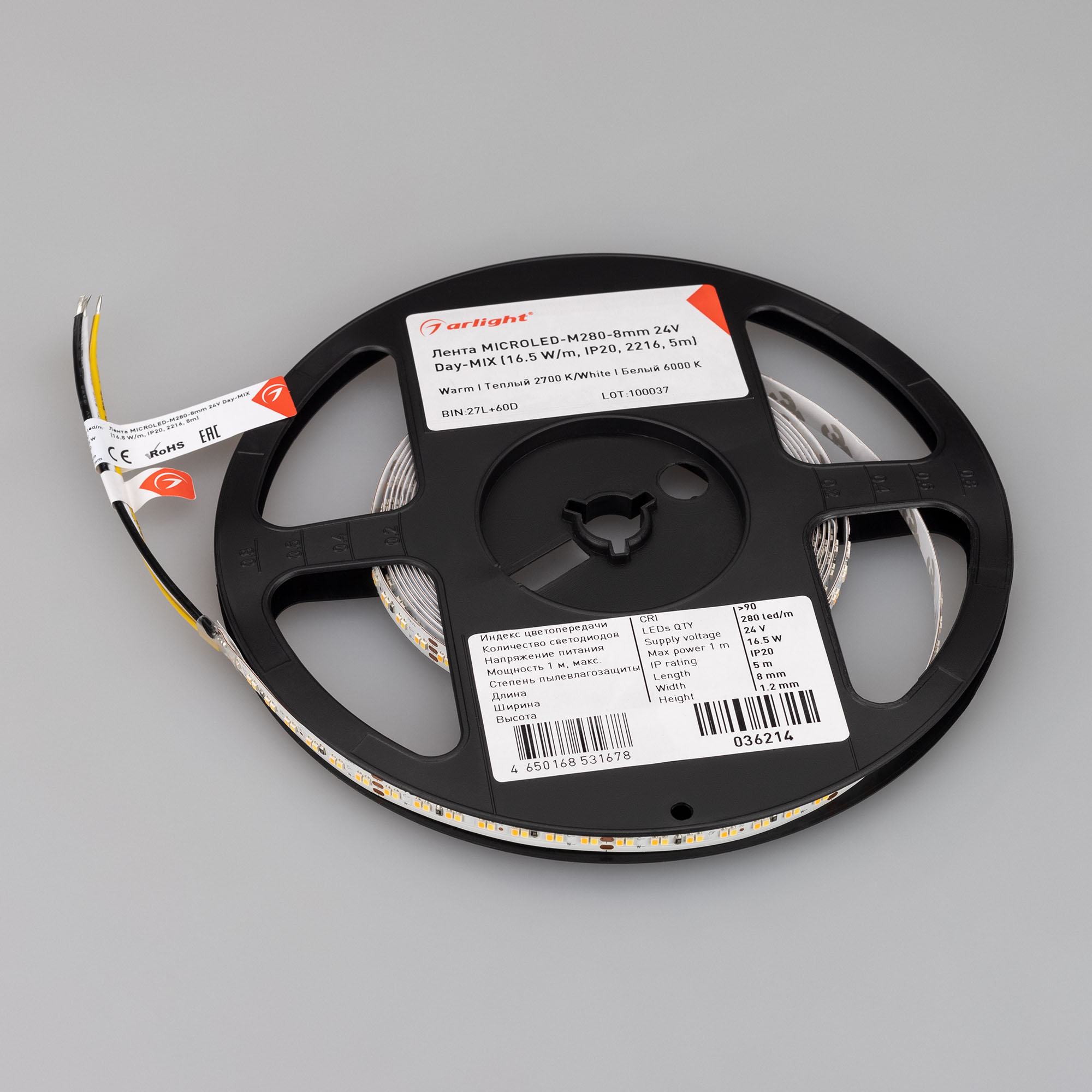 Светодиодная Лента MICROLED-M280-8mm 24V White-MIX (16.5 W/m, IP20, 2216, 5m) (Arlight, Изменяемая ЦТ)