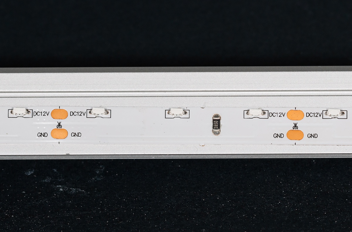 Лента LUX бокового свечения шириной 8 мм со светодиодами SMD 3014 (60 шт/м) дневного белого цвета свечения (4800–5300 К). Индекс цветопередачи CRI>80. Мощность 4.8 Вт/м, напряжение питания 12 В. Светодиоды светят в плоскости ленты в одну сторону. Подходит для установки в тонкие (от 2 мм) ниши для подсветки мебели, ступеней, стеклянных полок. Создает контурное свечение при установке на стенки рекламных знаков, букв. Минимальный отрезок 50 мм (3 светодиода).