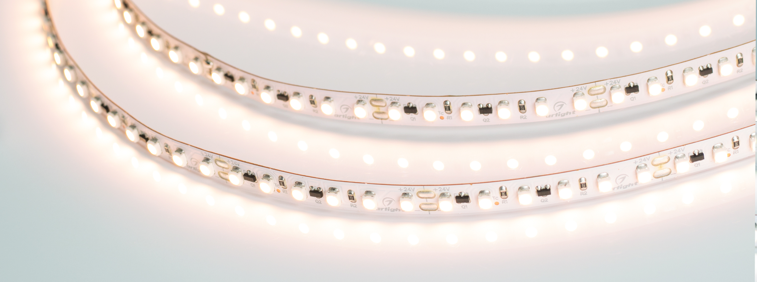 Стабилизированная лента длиной 10 метров и шириной 8 мм. Стабилизаторы тока обеспечивают равномерное свечение по всей длине ленты даже при подключении только с одной стороны. Светодиоды SMD 3528 (120 шт/м) теплого белого цвета свечения (2800–3000 K) с индексом цветопередачи CRI>80. Мощность 9.6 Вт/м, напряжение питания 24 В. Подсветка потолочных ниш, декоративная подсветка, создание контуров рекламных объектов. Совместима с любыми диммерами (ШИМ). Минимальный отрезок 50 мм (6 светодиодов).