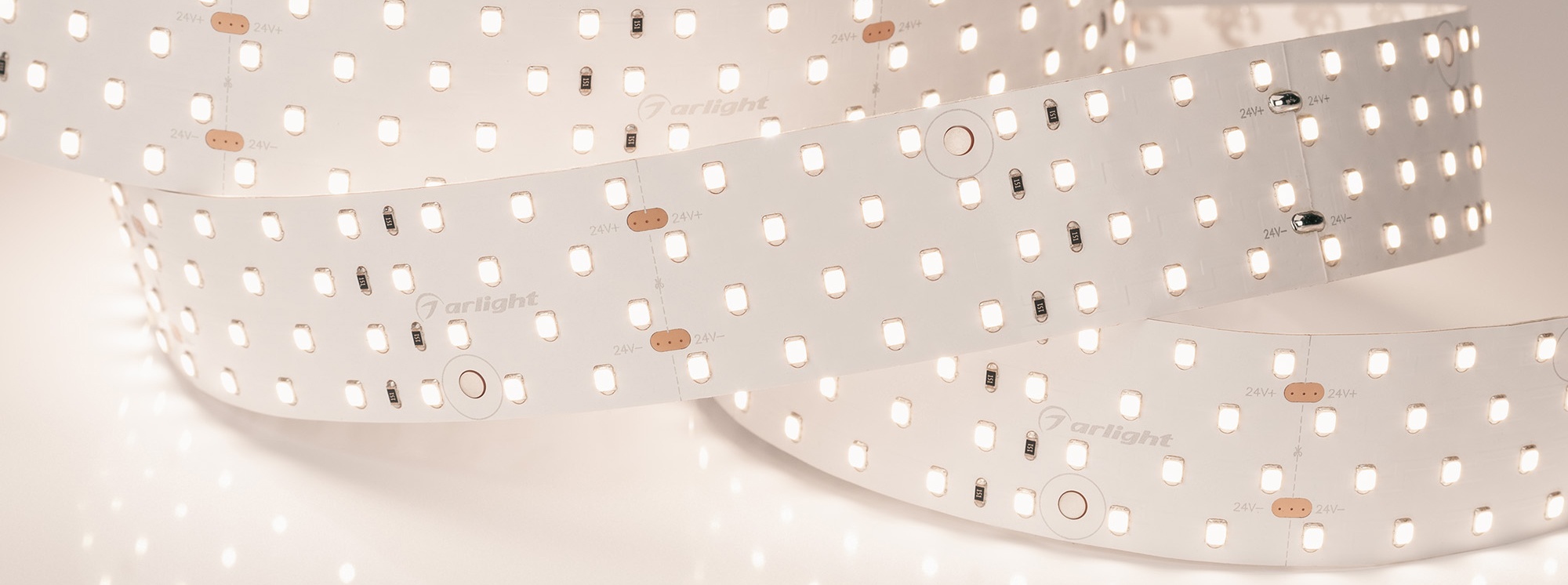 Характеристики - Лента RT 2-2500 24V Warm3500 4x2 (2835, 700 LED, CRI98) (Arlight, 30 Вт/м, IP20)