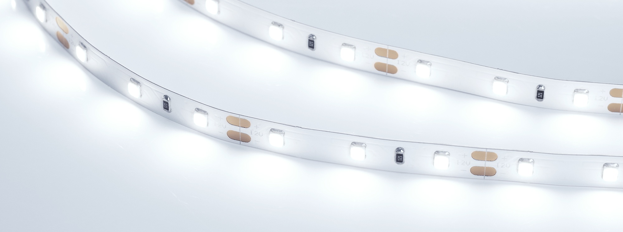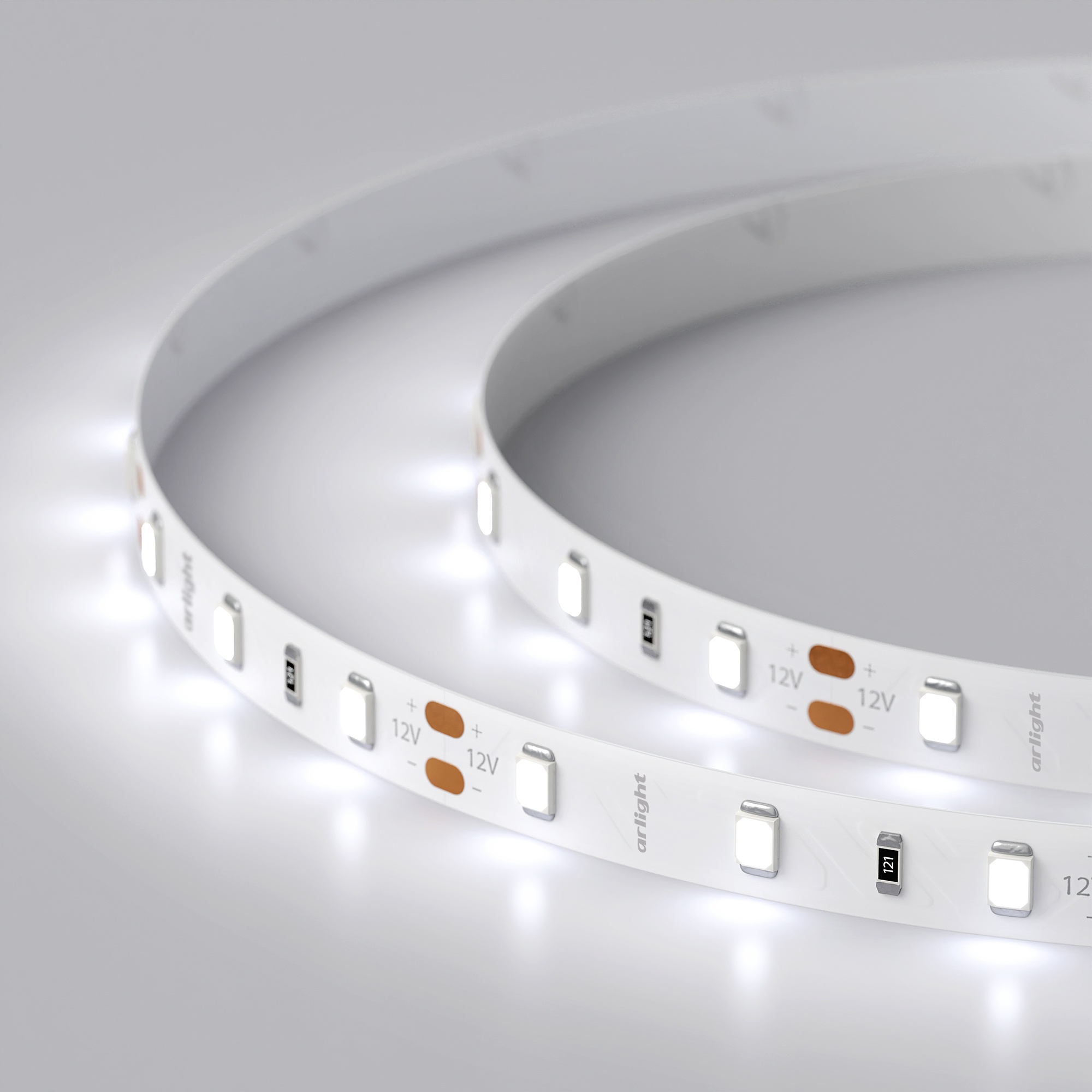 Открытая светодиодная лента шириной 8 мм и мощностью 7.2 Вт/м с индексом цветопередачи CRI>85. Напряжение питания 12 В. Светодиоды SMD 2835 (60 шт/м) холодного белого цвета свечения (7700–9600 К). Минимальный отрезок 50 мм (3 светодиода). Для создания качественного основного освещения и декоративной подсветки интерьеров, рекламных конструкций и витрин.