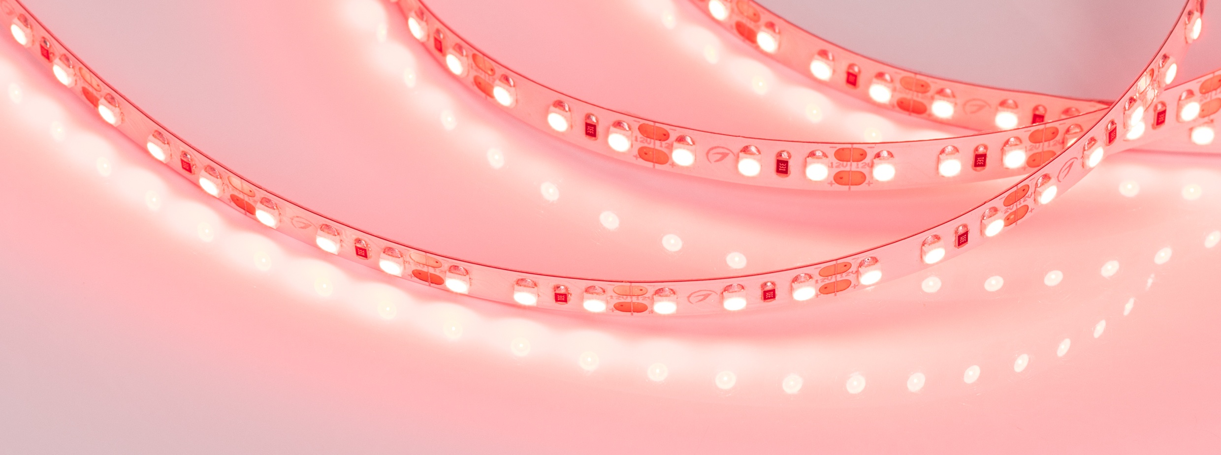 Светодиодная лента серии LUX шириной 8 мм с питанием 12 В и мощностью 9.6 Вт/м. Светодиоды 2x SMD 3528 красного цвета свечения с плотностью расстановки 120 шт/м. Степень пылевлагозащиты IP20. Универсальная лента для организации декоративной подсветки в помещениях: подсветка лестниц, ступеней, плинтусов, ниш, мебельных полок, натяжных потолков и витражей. Управление с помощью диммера для одноцветных лент.