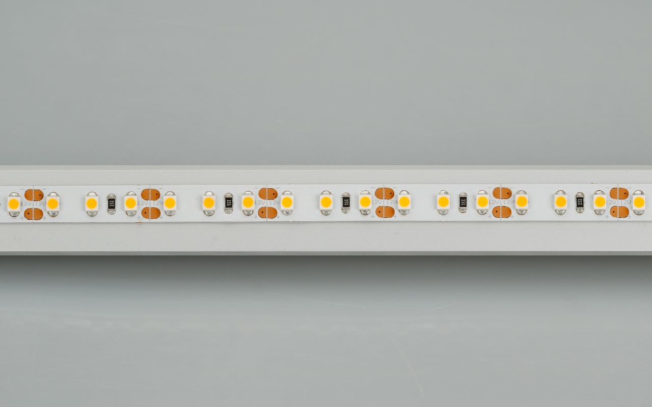 Светодиодная лента серии LUX шириной 8 мм с питанием 12 В и мощностью 9.6 Вт/м. Светодиоды 2x SMD 3528 теплого белого цвета свечения (2200 - 2400 К) с плотностью расстановки 120 шт/м. Индекс цветопередачи CRI>85 и степень пылевлагозащиты IP20. Универсальная лента для организации декоративной подсветки в помещениях: подсветка лестниц, ступеней, плинтусов, ниш, мебельных полок, натяжных потолков и витражей. Управление с помощью диммера для одноцветных лент.