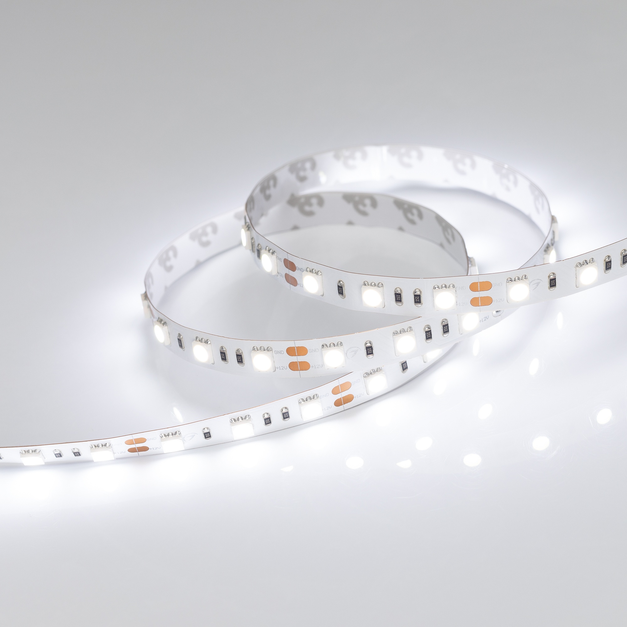 Гибкая лента LUX, светодиоды smd 5060, 60шт/м (300шт на 5м), белая плата 10мм, скотч 3М. Цвет БЕЛЫЙ 5500-6000K. Питание 12V, мощность 14.4 Вт/м (72 Вт на 5м), угол 120°, цветопередача CRI>85. Размеры 5000х10x2.2мм. Мин.отрезок 50мм, 3 шт светодиода. Пакет 5м. Цена за 1м.